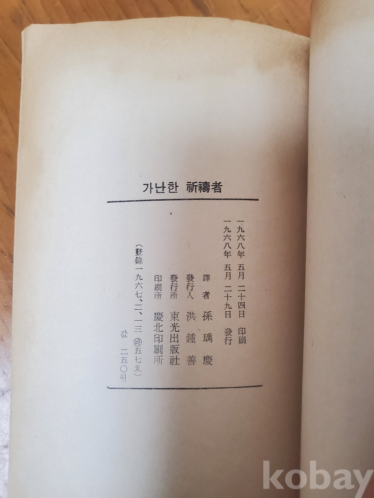 1. 가난한 기도자, 뤼시앵 제르파뇽, 동광출판사, 1966년, 186쪽, 상태 상, 사진 참조