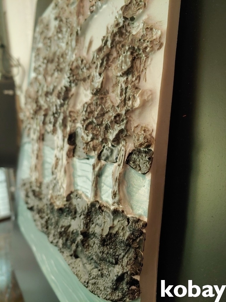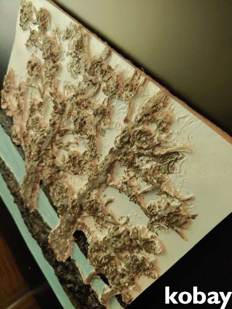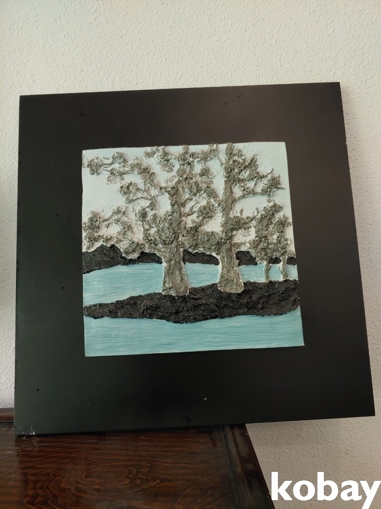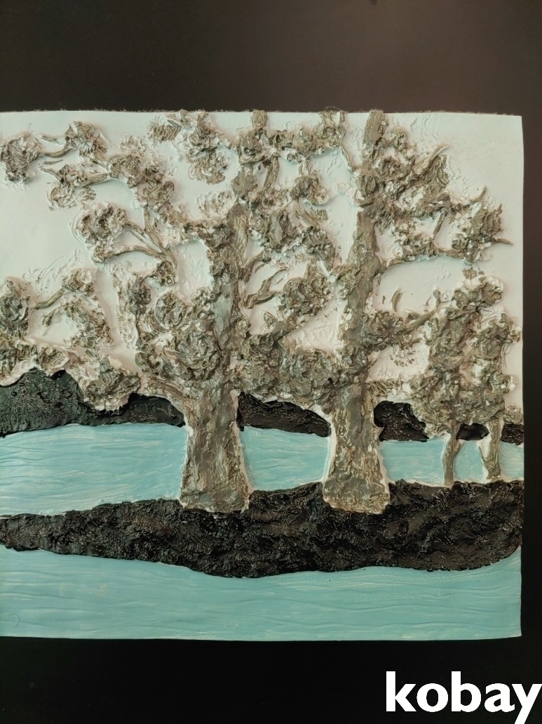 나무와 개울을 입체감 있게 표현한 벽걸이 소품 입니다.