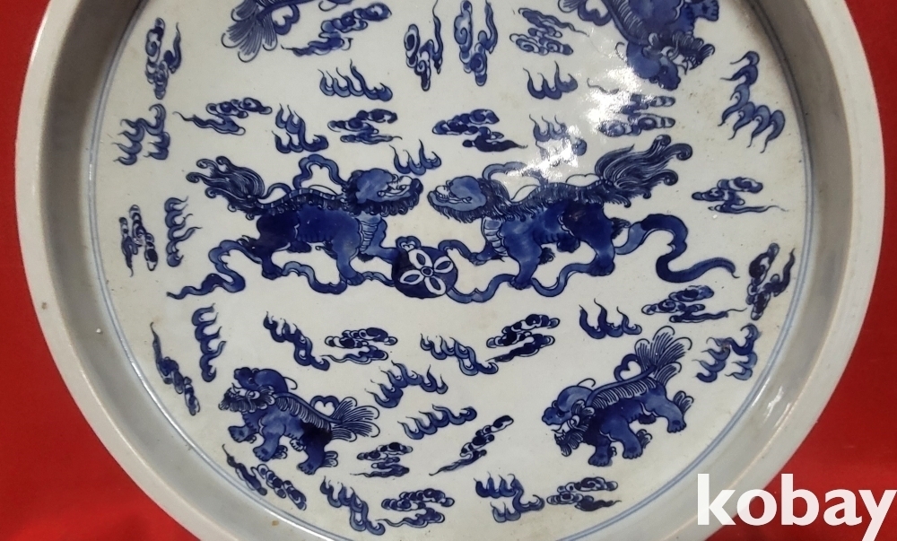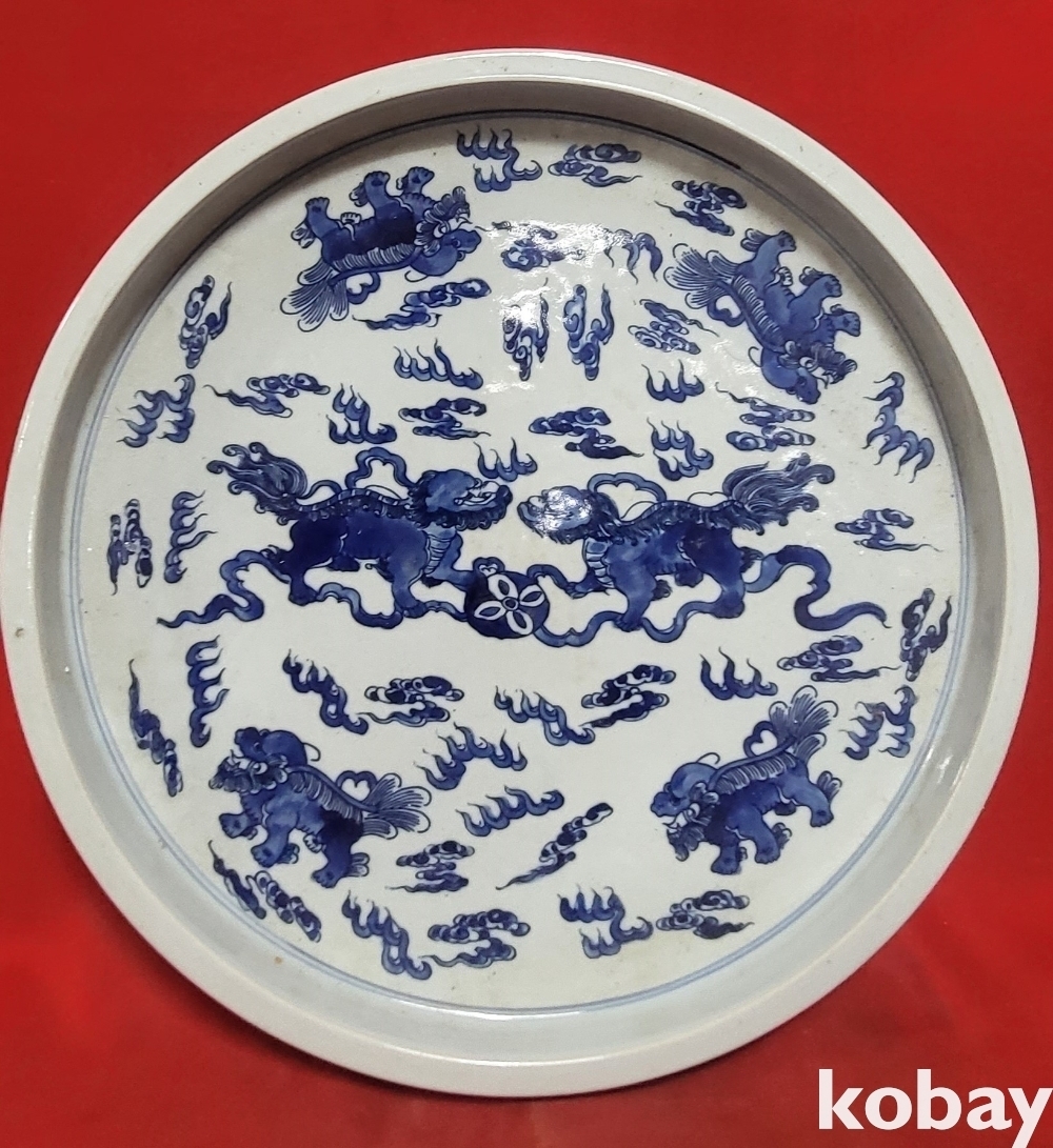 대청 강희 연제 서수(瑞 獸) 문양 대반 (大 盤 )입니다,