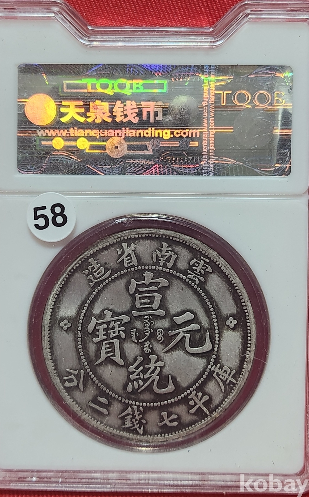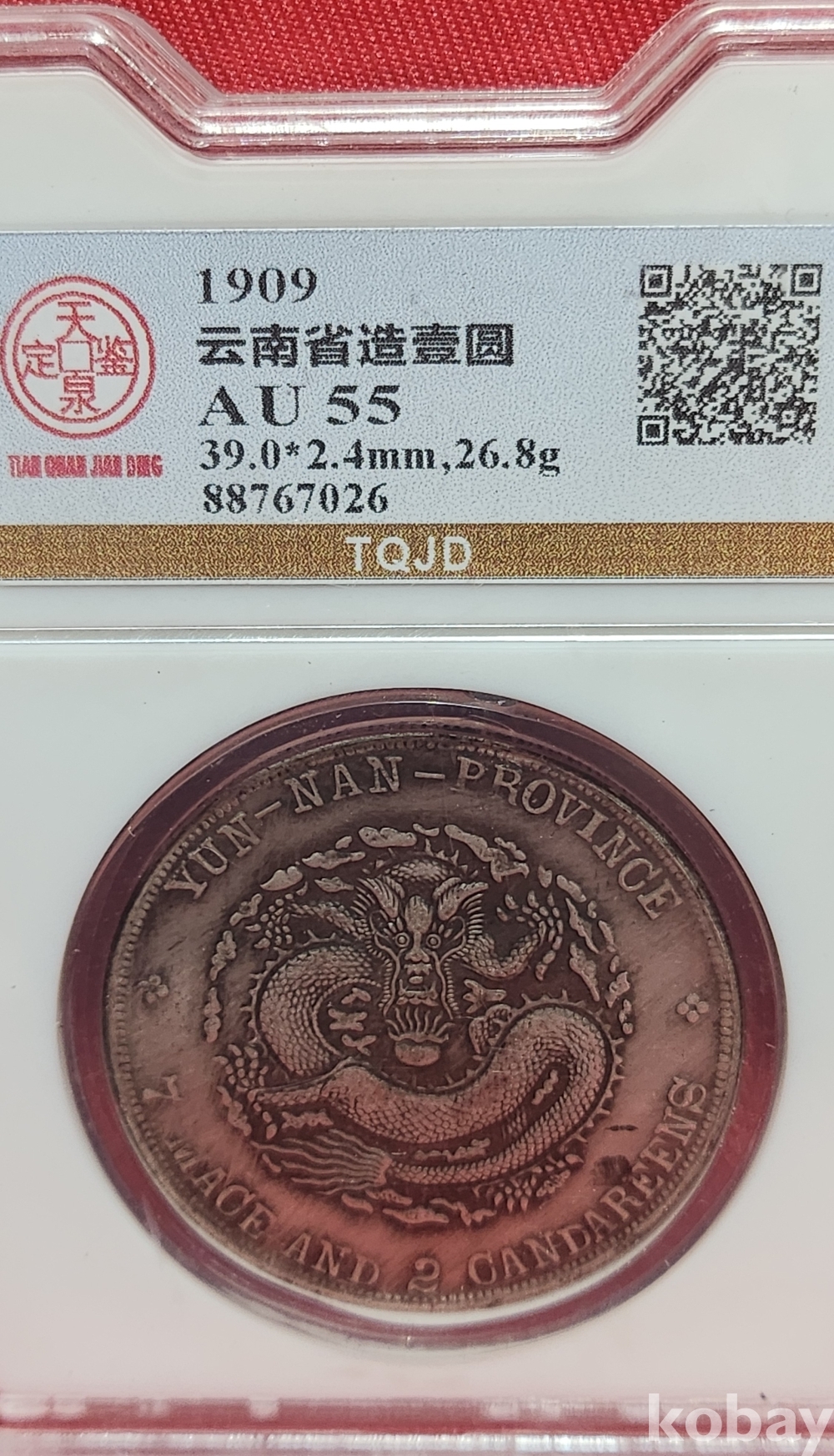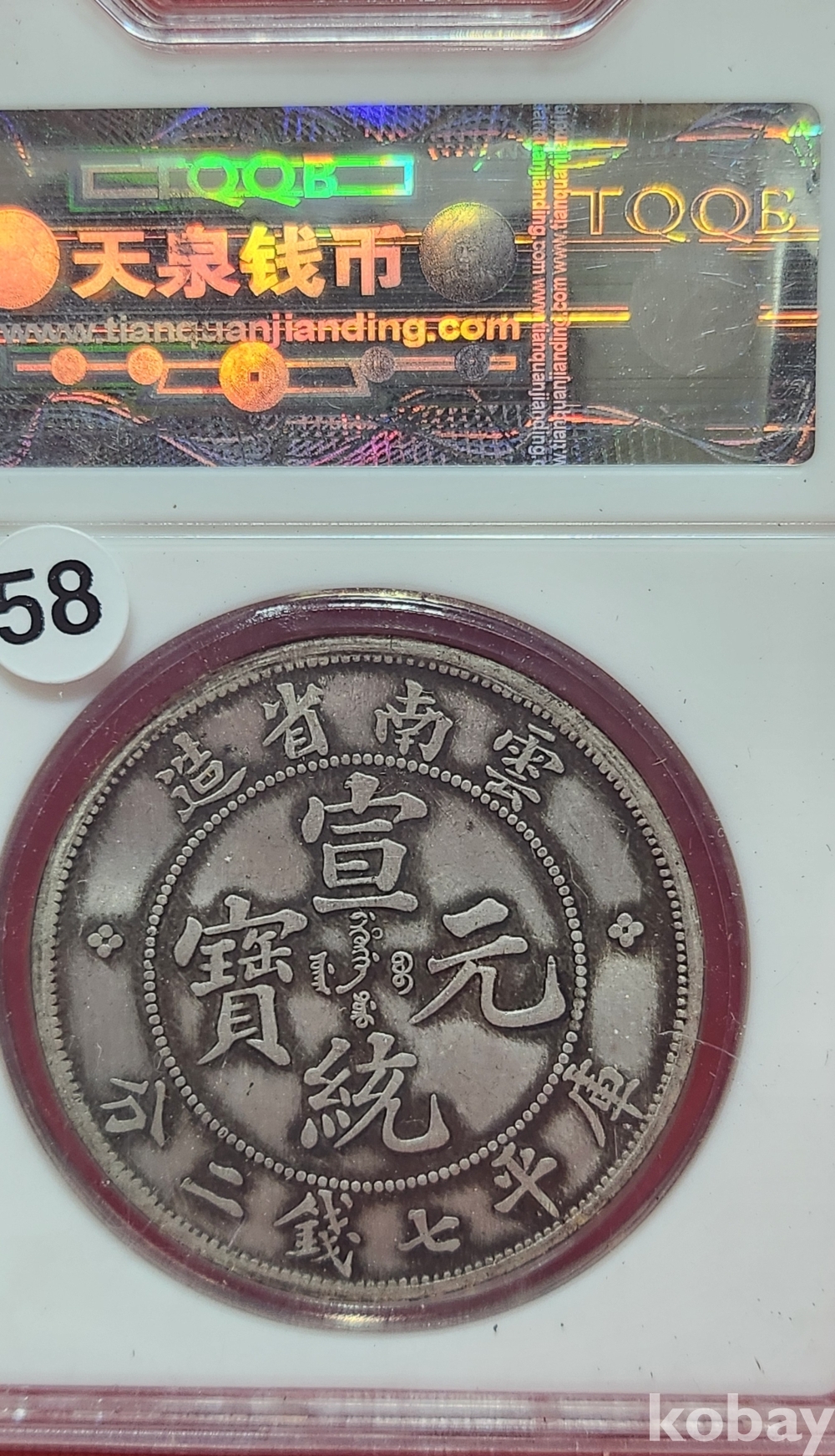 1909년 큐알코드(QR CODE)가 함께하는 은색 선통원보기념 밀봉된 상태입니다,