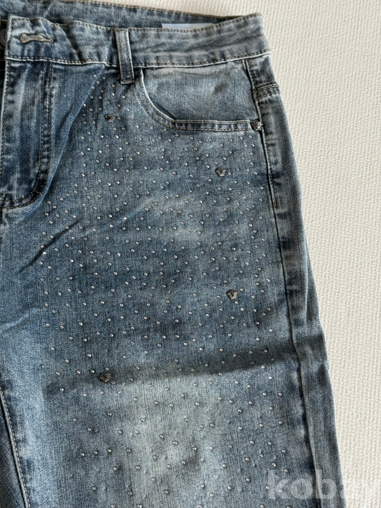 청바지 포인트 장식들이 있습니다 (버클,큐빅,가죽등)사진과 같습니다 적당히 늘어나는 활동시 편한편입니다