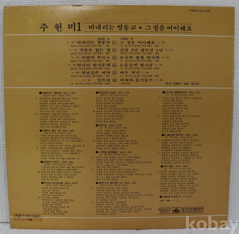 가사지가 없는데 있다고 표기된것은 뒷면에 가사인쇄가 있어서 입니다.