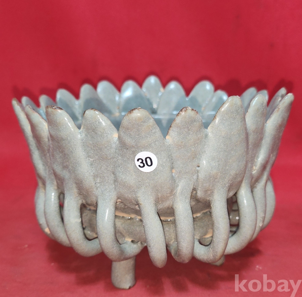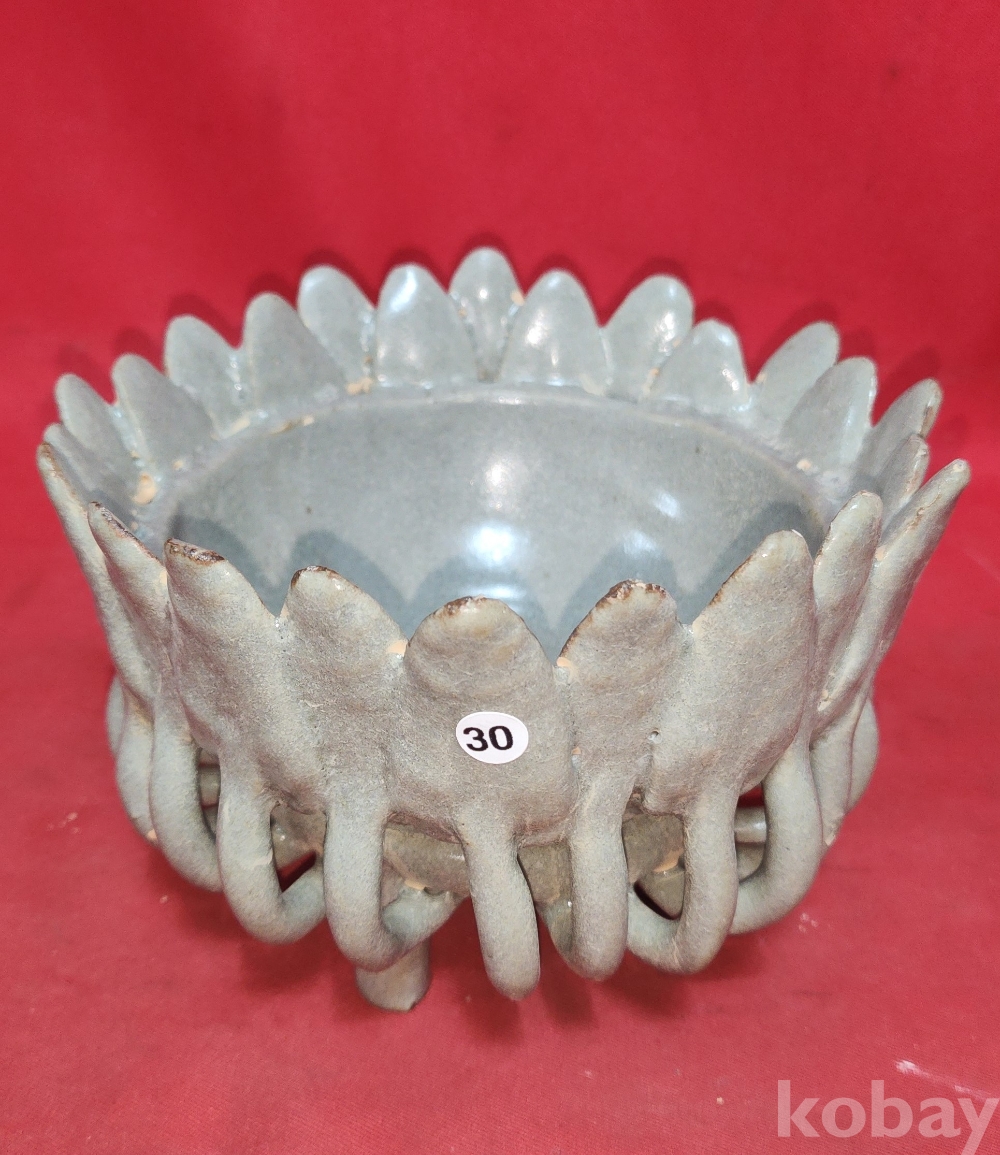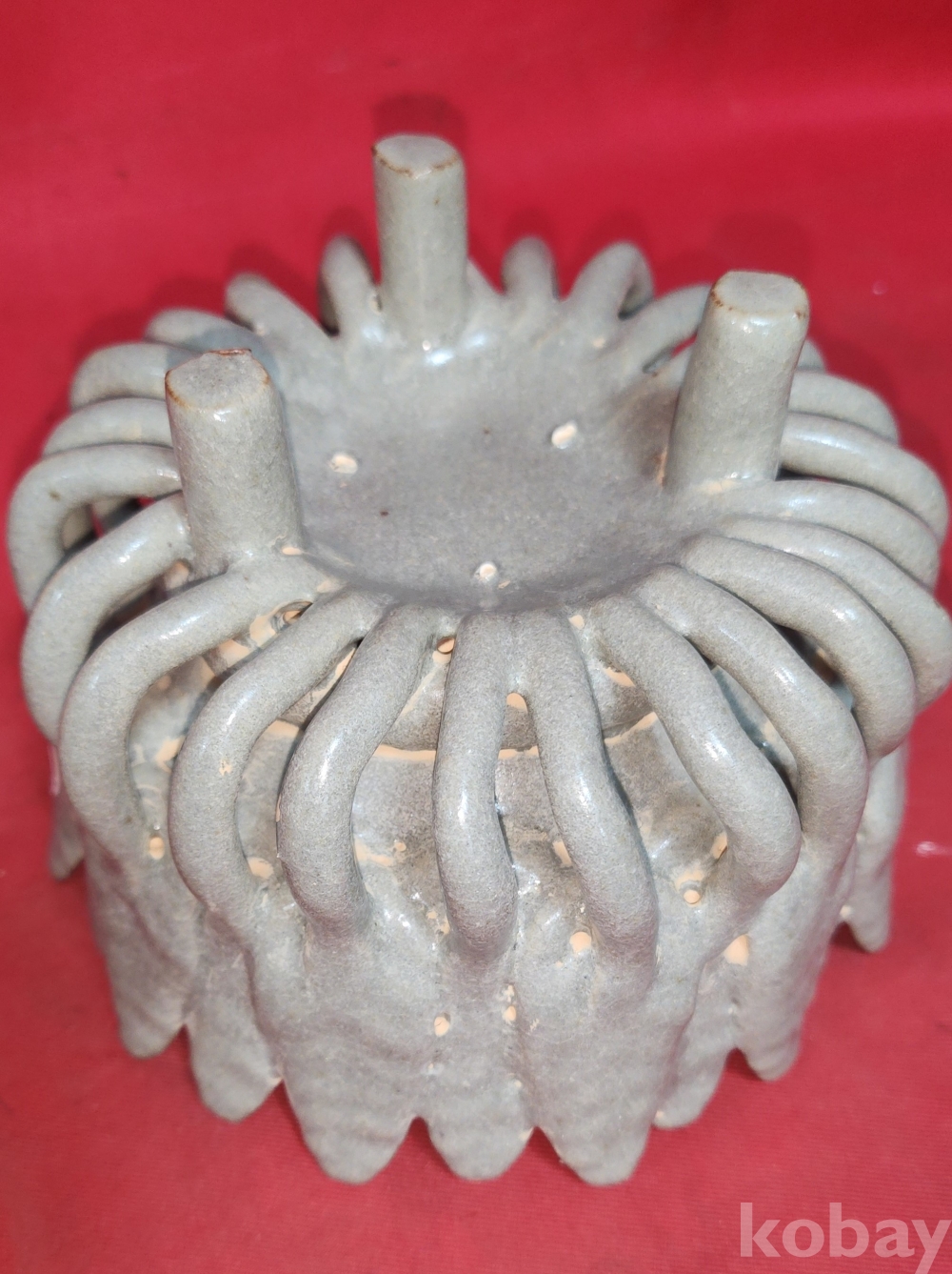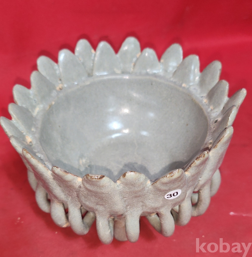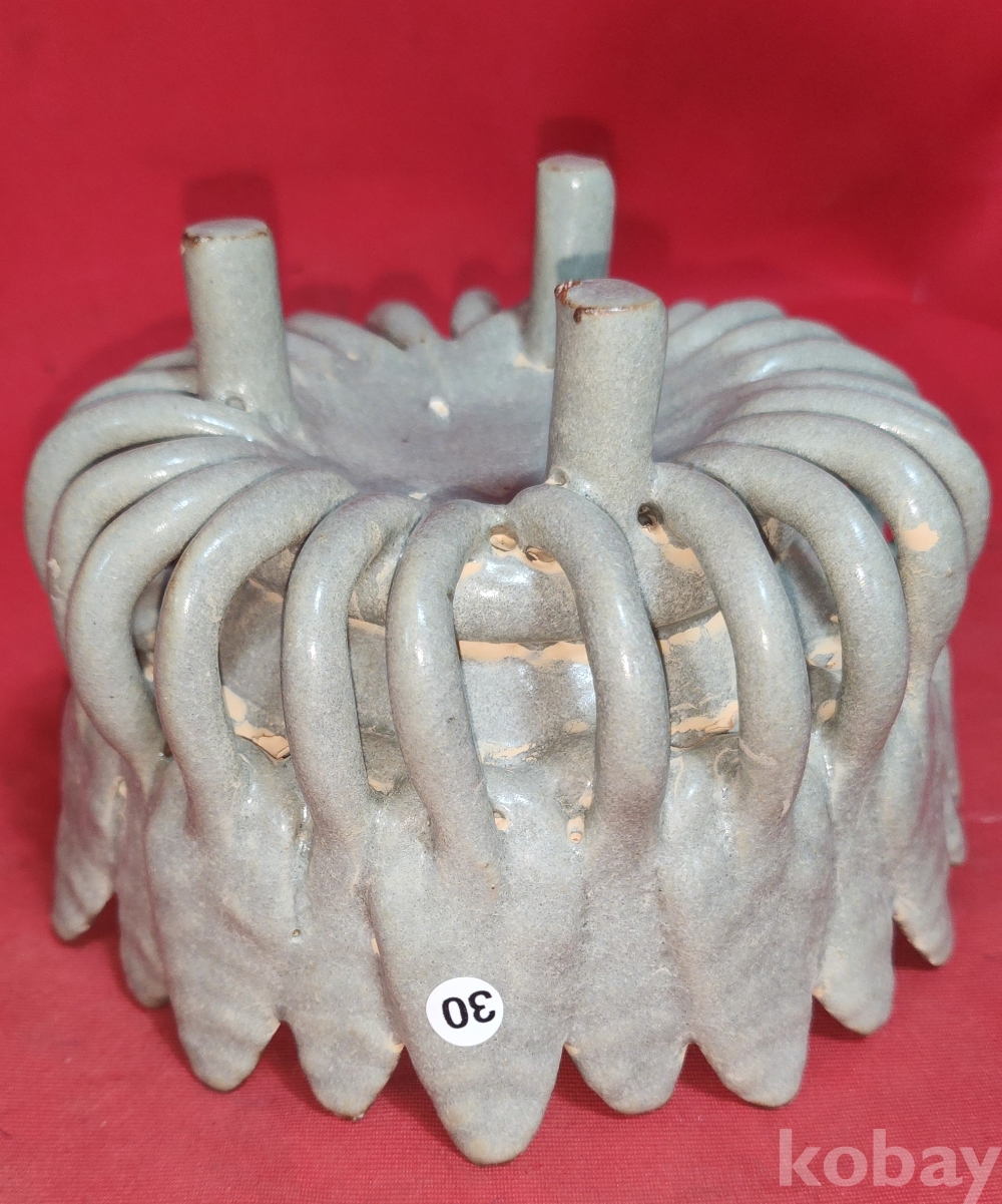청자 투각 꽃잎 화형 문양 삼족 향로겸 향완(香碗)입니다,