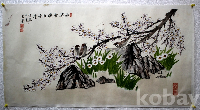 岩堂(암당)의 화조도 - 괴석의 난과 매화와 새