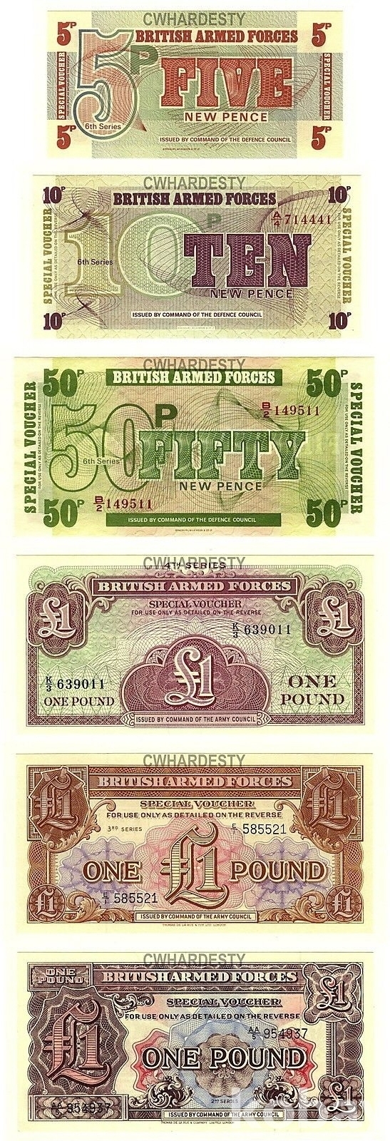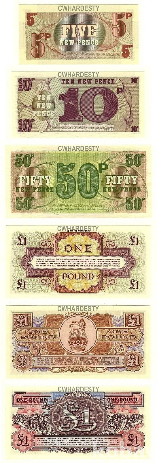 영국 군표(Militaly Momey) 6종 (UNC)