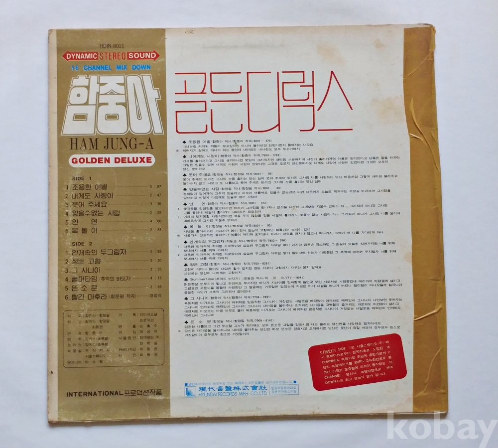 EX : 약간의 마모, 모서리 찢김 존재 음반상태