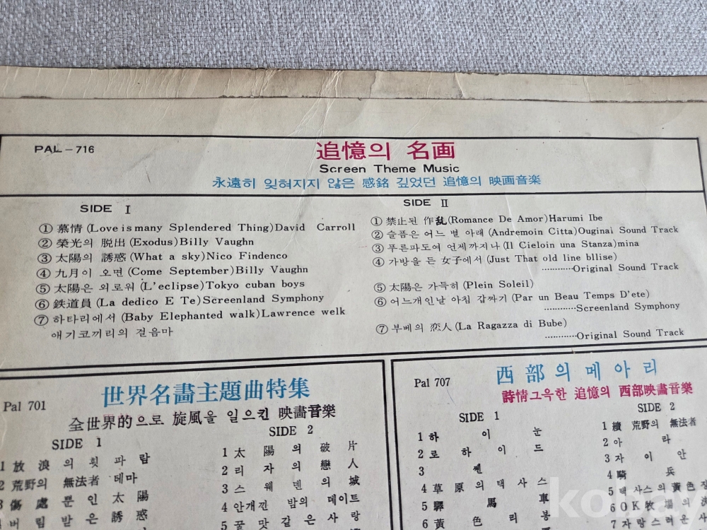 한국 파라다이스 레코드사에서 발매한 빈티지 영화 음악 LP 레코드 입니다