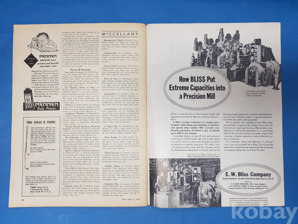 **** TIME 'THE WEEKLY NEWSMAGAZINE'/1950.4.17/44페이지