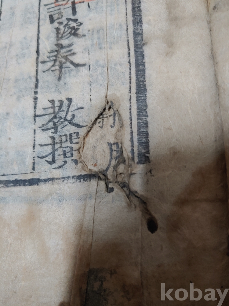 권지9의 앞장 하단에 조금 떨어져 나간 부분과 얼룩이 있음