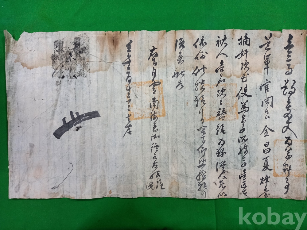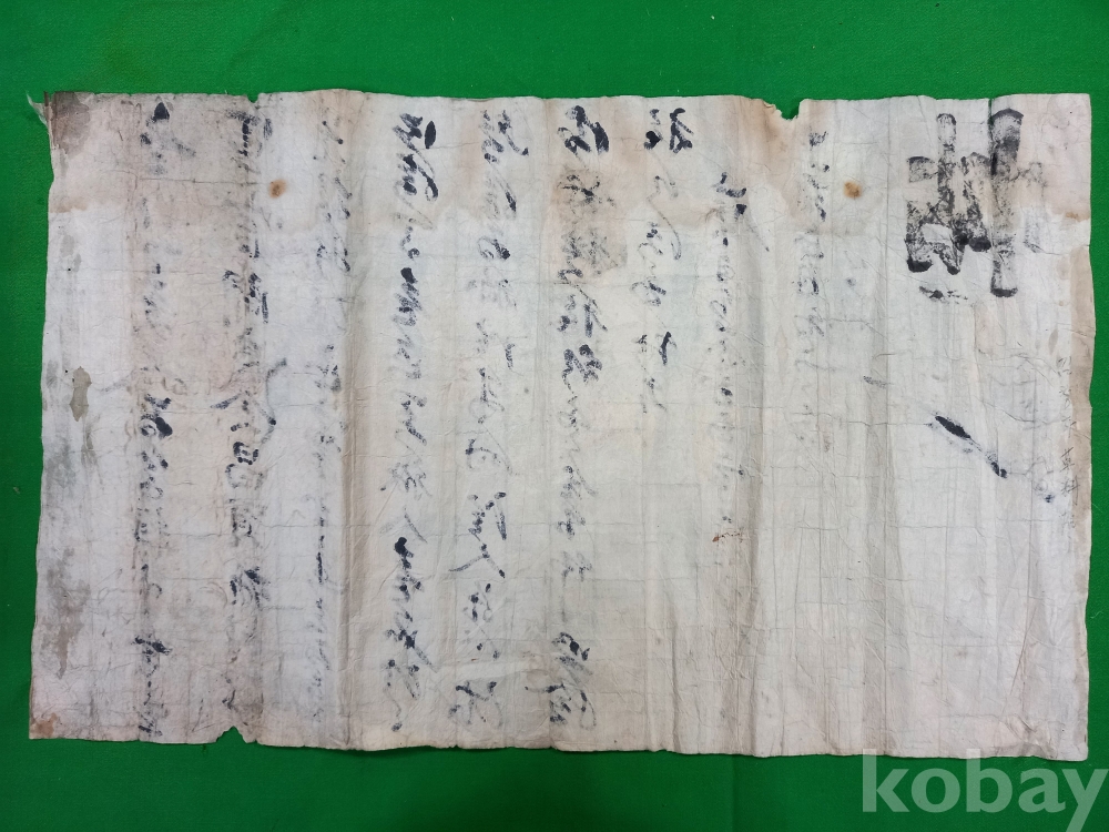 수결(사인): 문서 왼쪽 하단에는 발급자가 자신의 신원을 확인하기 위해 남긴 독특한 형태의 사인인 수결이 크게 그려져 있습니다.