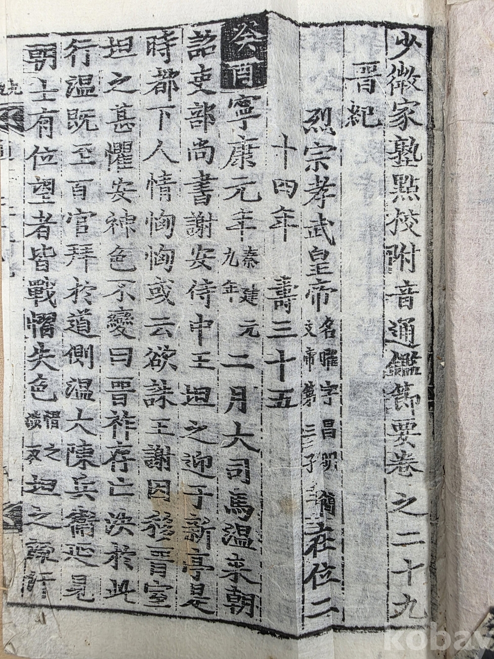 필사본 (권지일), 인쇄본 (제 오, 칠, 구, 십). 중국 송나라의 사마광이 영종의 명에 따라 펴낸 중국의 편년서 (표준국어대사전).