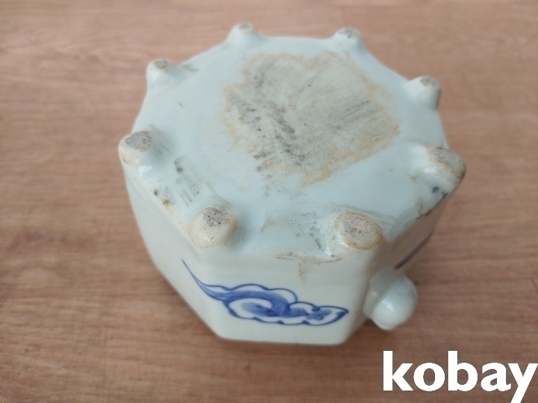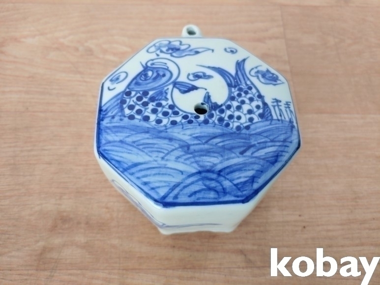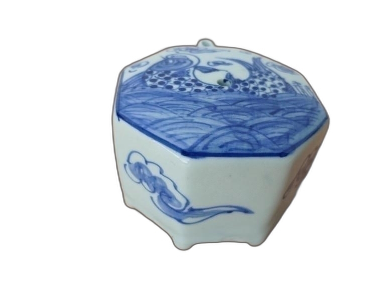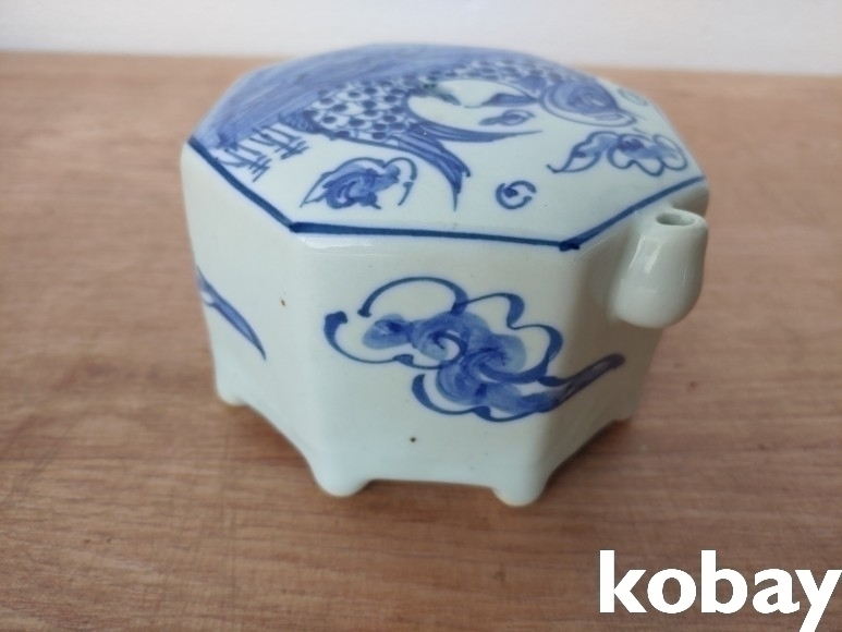 물고기 문양의 8각 대형 연적 도자기 입니다.