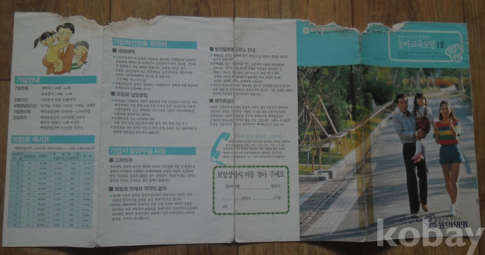 1984년 발행 동아교육보험 리플릿