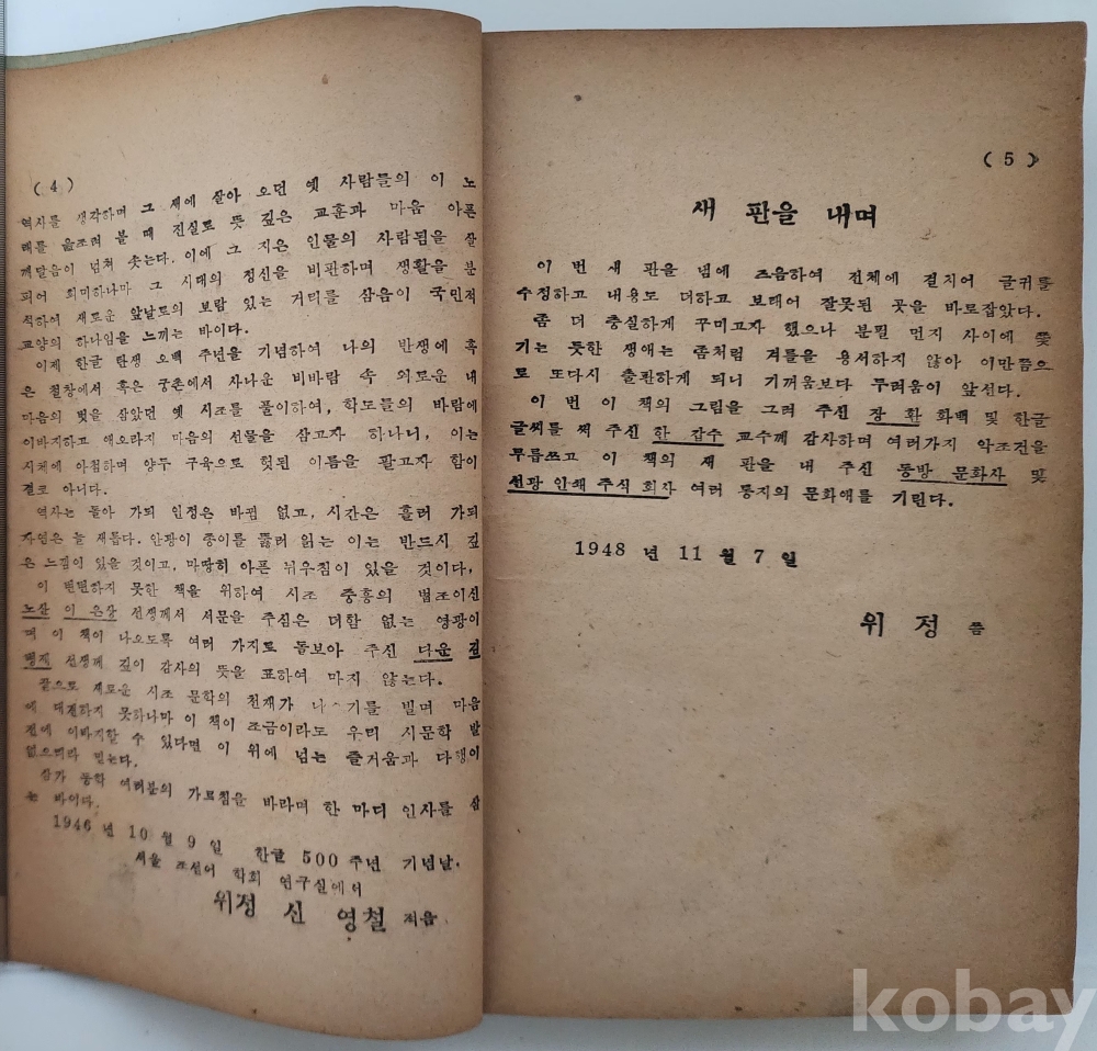 자료명/ 저자/ 발행/ 형태사항 | 『고시조신석 · 古時調新釋』/ 위정 신영철(爲正申瑛澈, 1917~1950) 著/ 서울: 東國文化社, 1951.11.20_중판/ 266p. 책등 보수. |