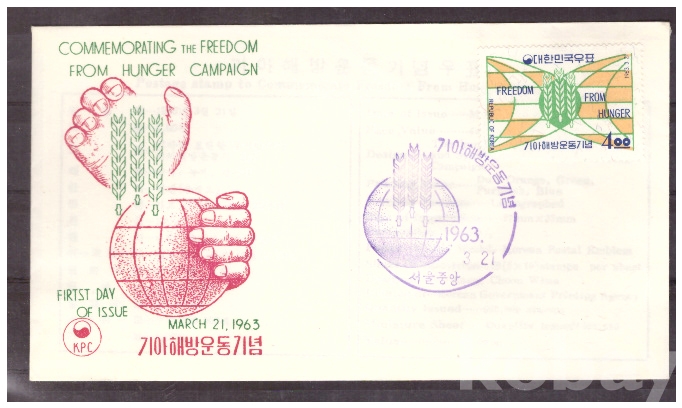 (초일봉피) 1963.3.21 기아헤방운동 기념 FDC (서울중앙 1963.3.21)