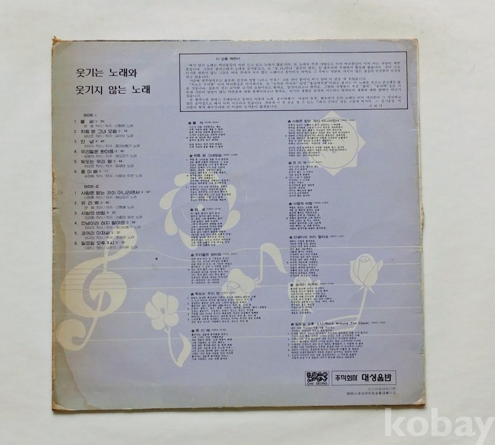 | 자켓상태 | EX : 약간의 마모, 모서리 찢김 존재 | 음반상태 | VG : 생활 기스 다수, 가벼운 노이즈 존재 | 발매정보 | 알수없음 | 가사지여부 | 무 |