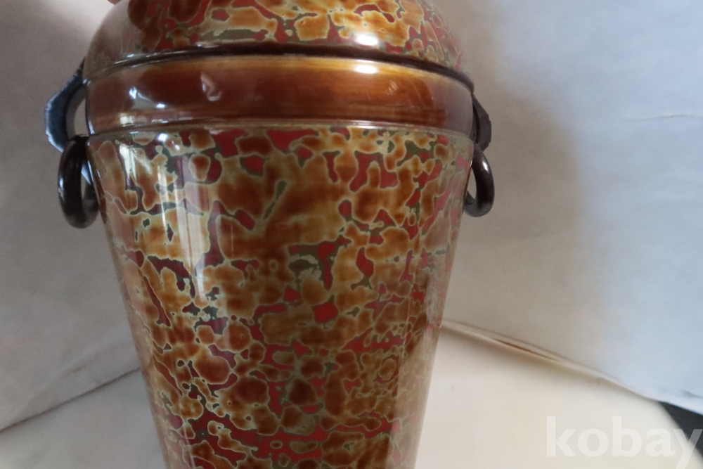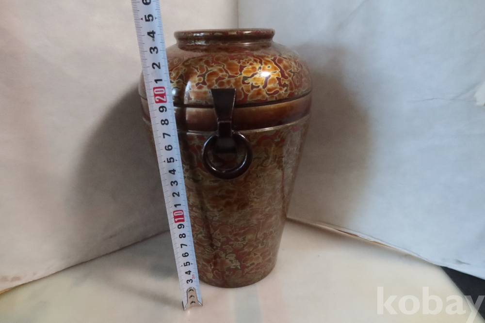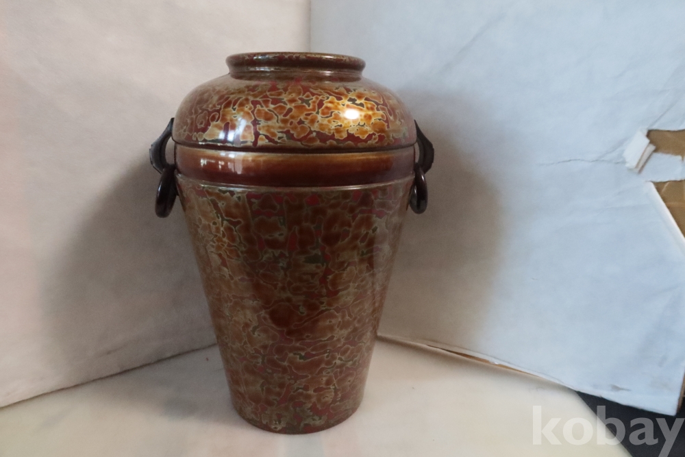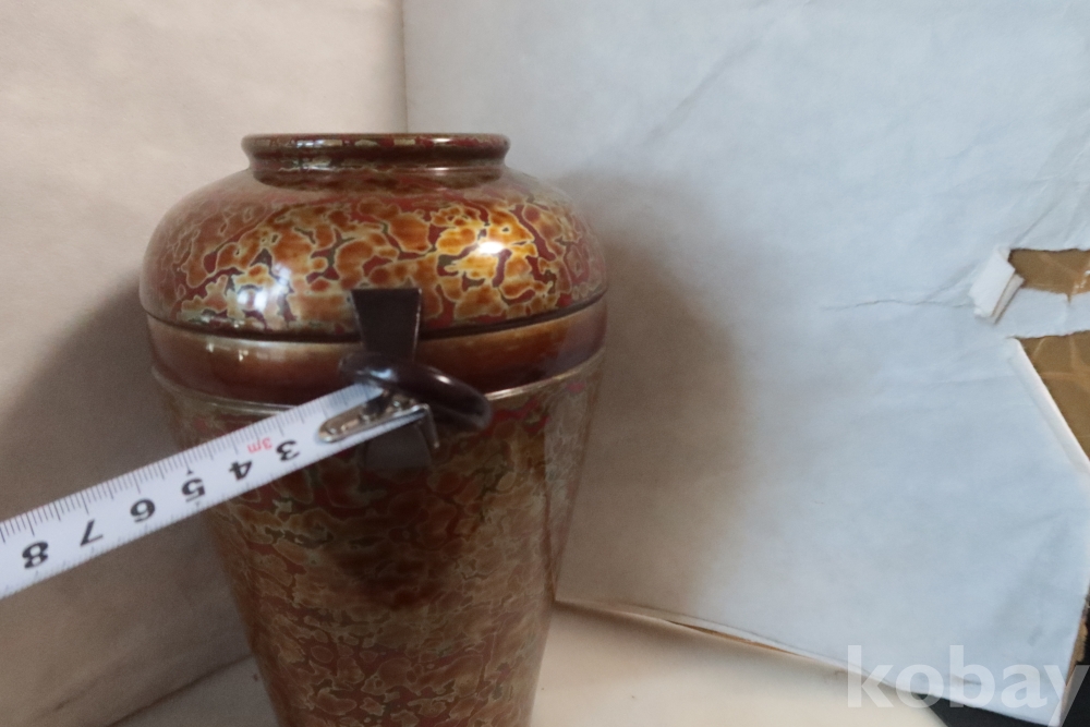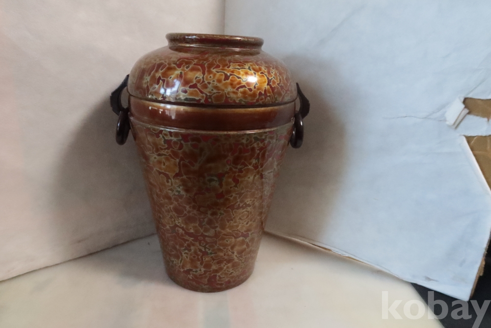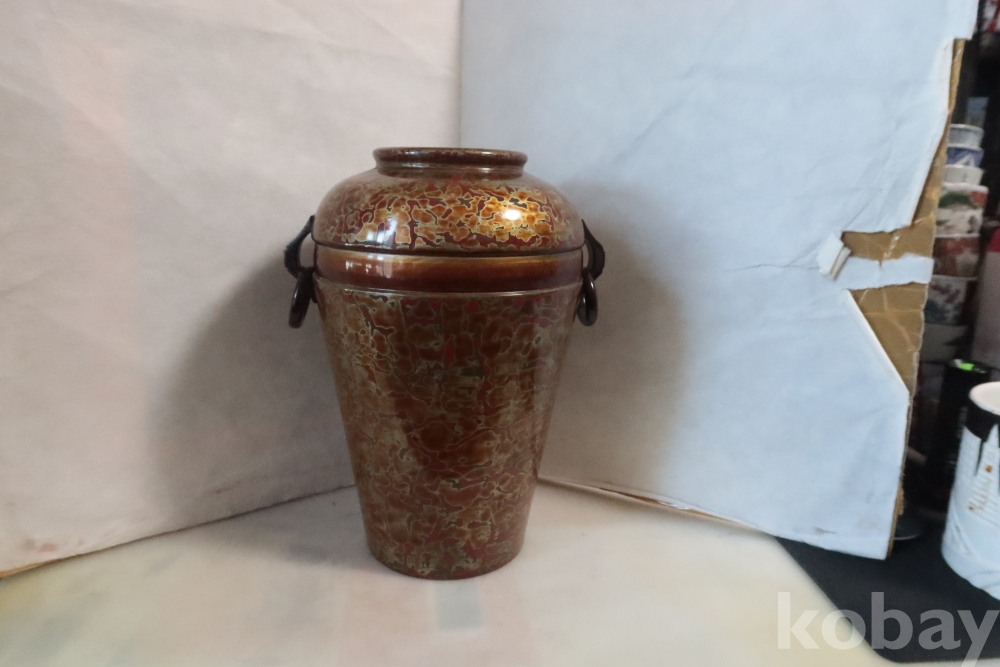 일본 칠기 화병 임니다 대단한 기술력과 우아함 무개감 등등 당대의 명품 임니다 무개감이 대단하며 움직이는 고리 처리 질리지않은 문양 등등 일본 에서 만든 당대의 명품 임니다