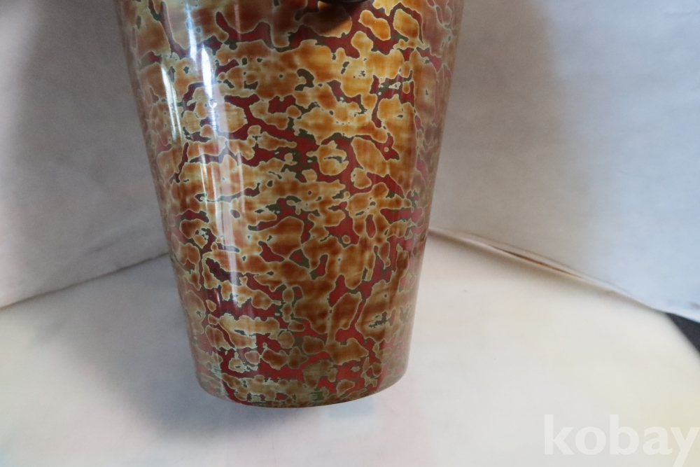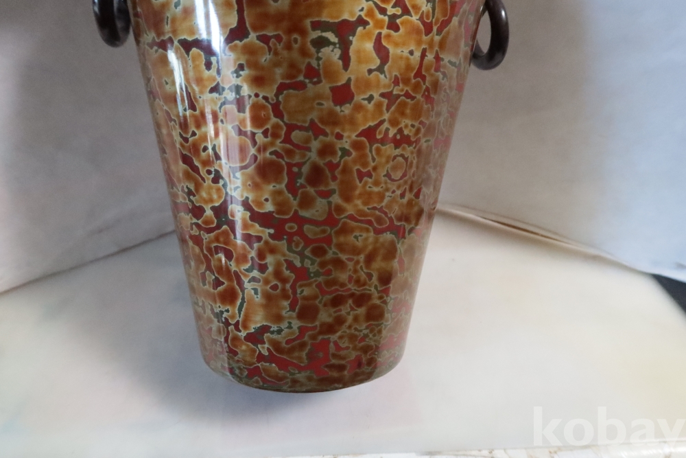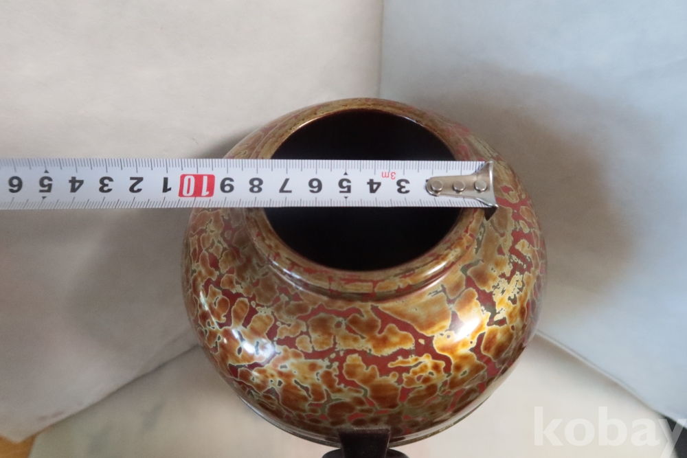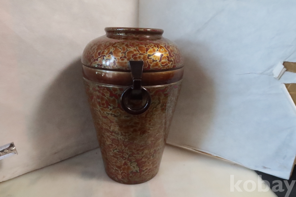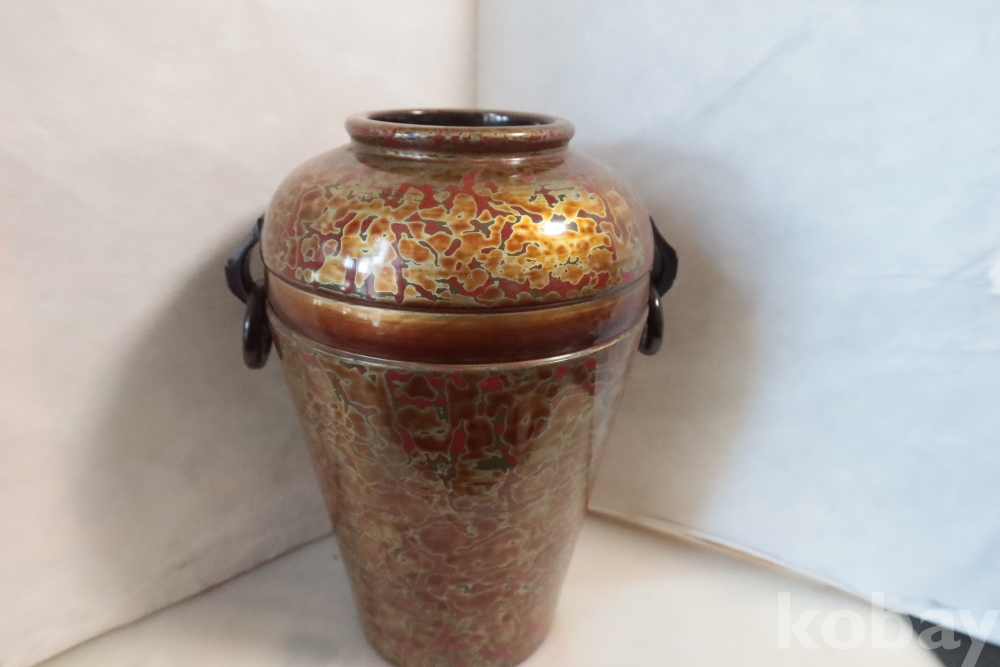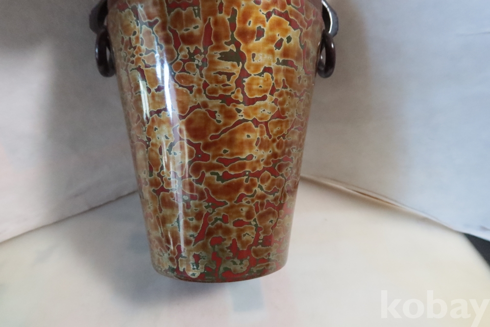 일본 칠기 화병 임니다 대단한 기술력과 우아함 무개감 등등 당대의 명품 임니다 무개감이 대단하며 움직이는 고리 처리 질리지않은 문양 등등 일본 에서 만든 당대의 명품 임니다