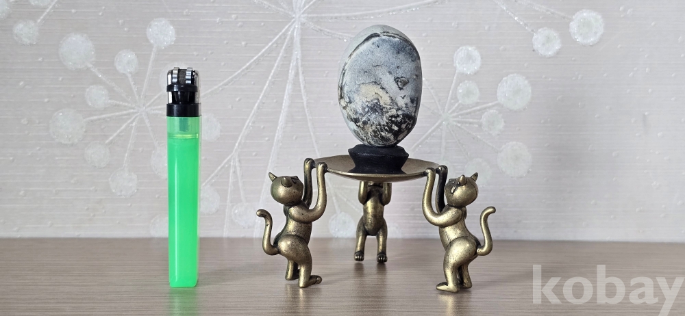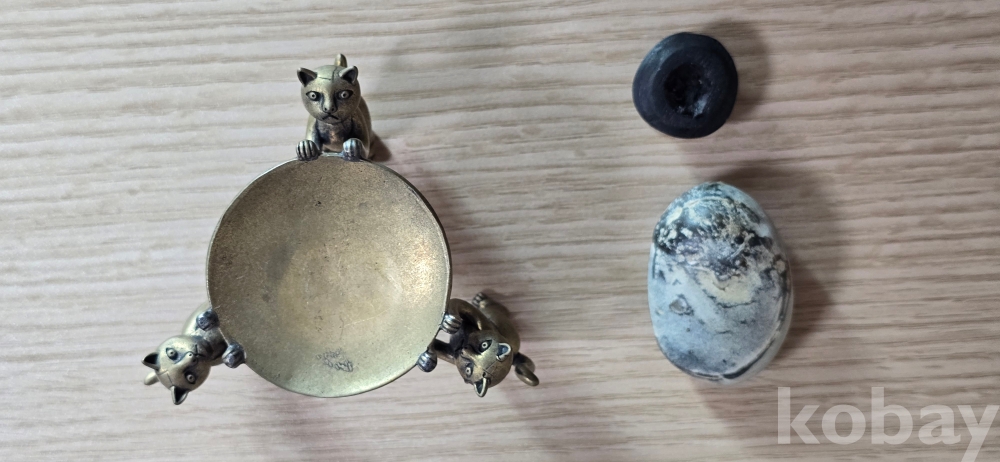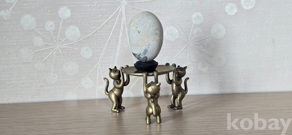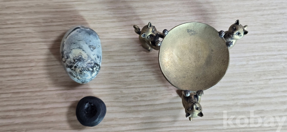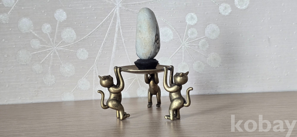 @. 완벽한 운무산경 깨돌을, 동(브론즈) 고양이 받침에 연출.