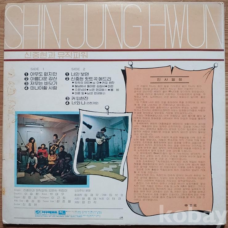 | 자켓상태 | VG : 주름, 접힘, 모서리 찢김 다수 | 음반상태 | VG : 생활 기스 다수, 가벼운 노이즈 존재 | 발매정보 | 초반 | 가사지여부 | 유 |
