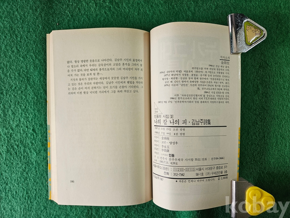 1] 품명 : " 나의 칼 나의 피 " 민족문화 대표적인 시인 - 인동의 시집 2