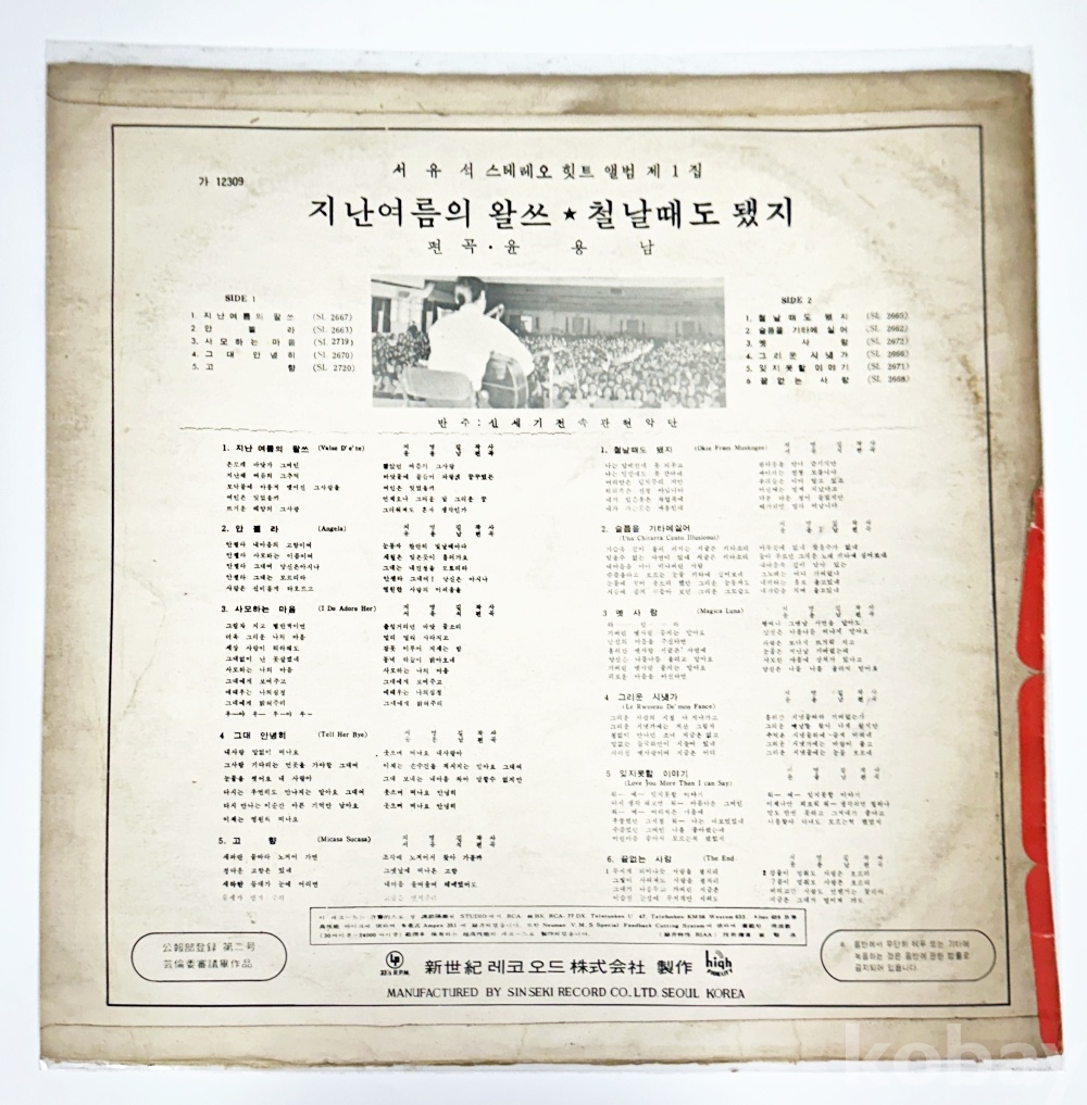 상품 설명 | Side A 1. 지난여름의 왈쓰 2. 안젤라 3. 사모하는 마음 4. 그대 안녕히 5. 고향