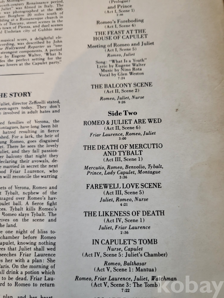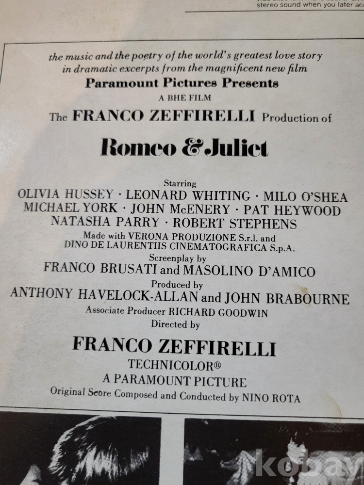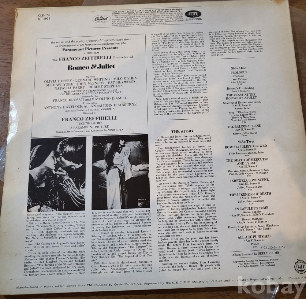 Lp((☆30회미만 청음반☆)(((영화 로미오앤줄리엣 OST 프랭코 재파랠리))((☆☆음반2장이며 1장은 써비스입니다☆☆)))))