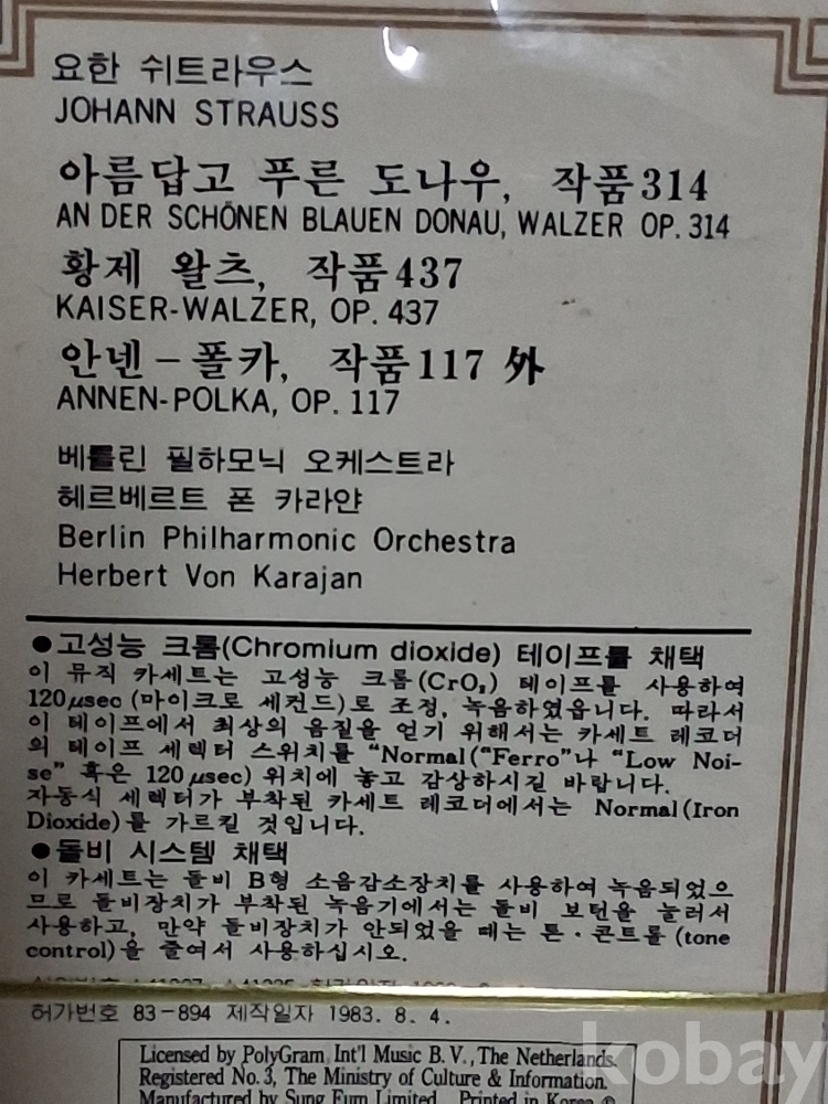 사오기미개봉,아름답고 푸른 도나우 ,,,카세트테이프