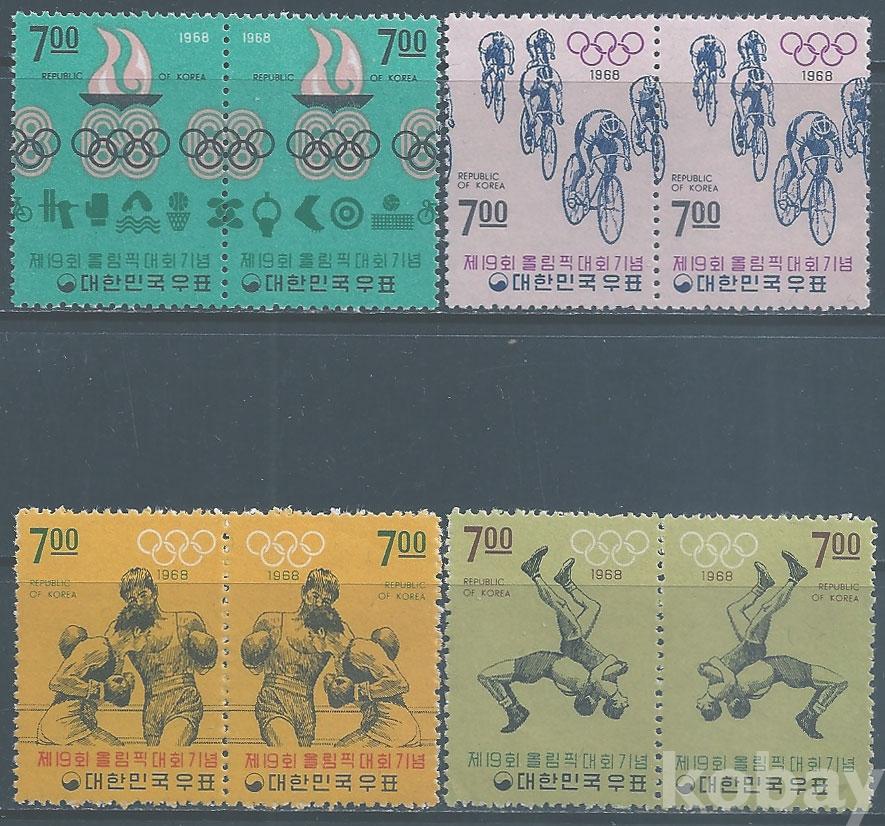 (한국우표-12)1968년19회올림픽대회2연쇄4종(미사용제)-MNH, VF