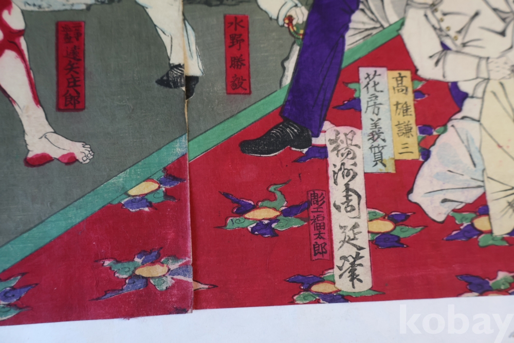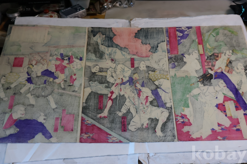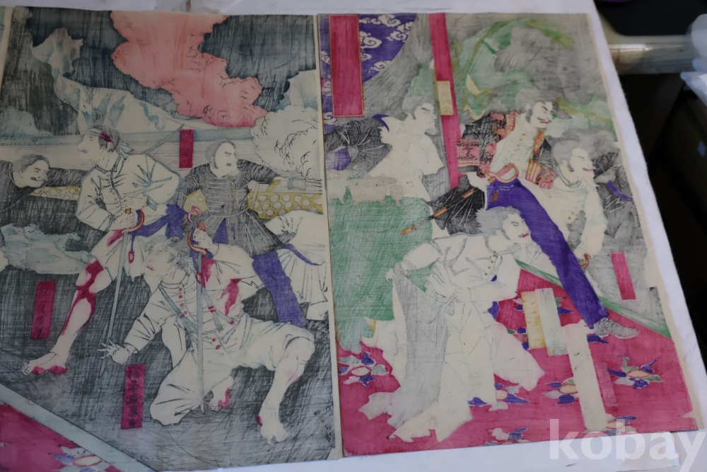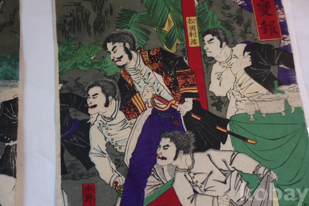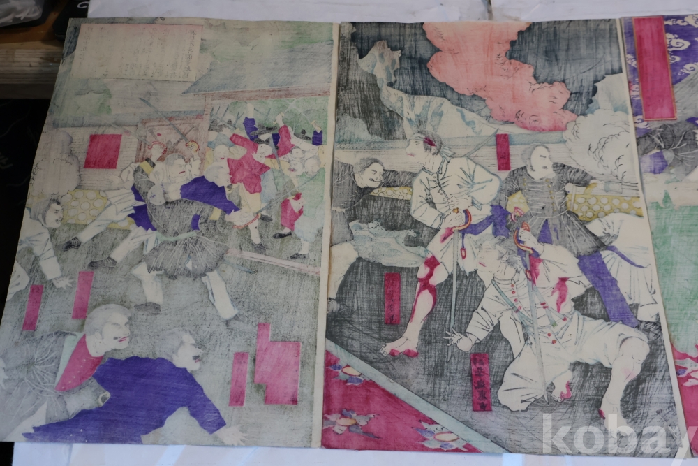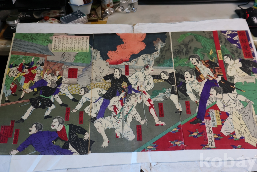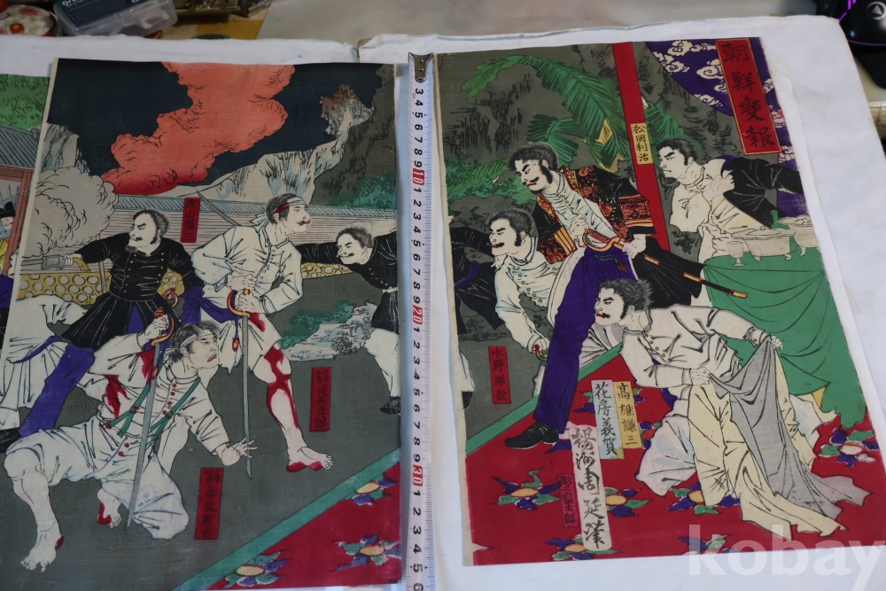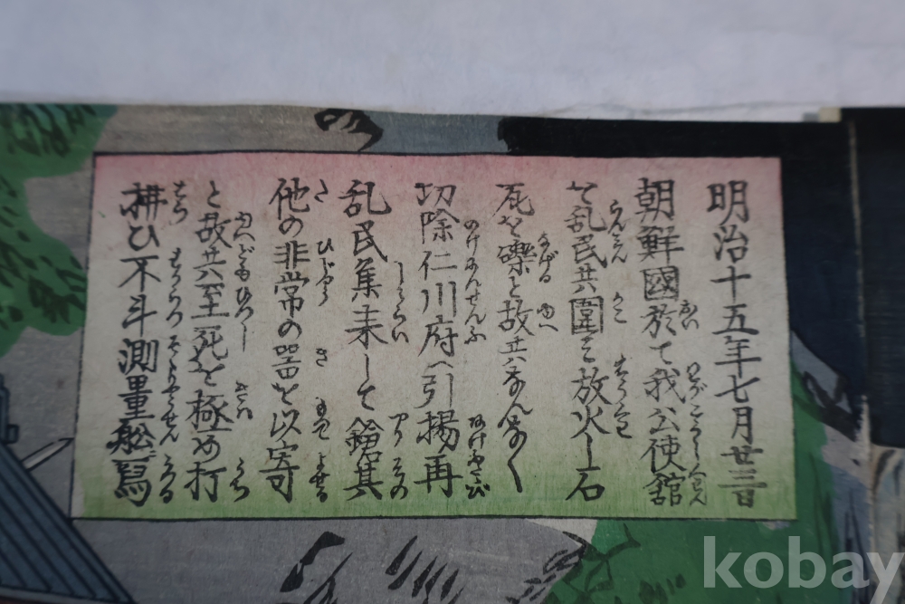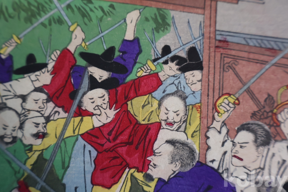 역사적 사실을 알린 일본 목판화 원본 임니다 제작 년도 사건 내용을 가진 명물 임니다 임오군란의 일본 영사관 전투도 임니다