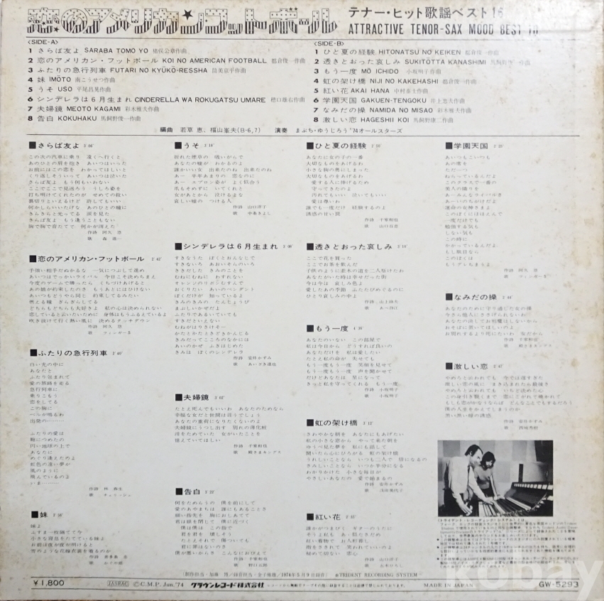 | 자켓상태 | VG : 주름, 접힘, 모서리 찢김 다수 | 음반상태 | EX : 재생에 영향 없는 가벼운 기스 존재 | 발매정보 | 알수없음 | 가사지여부 | 무 |
