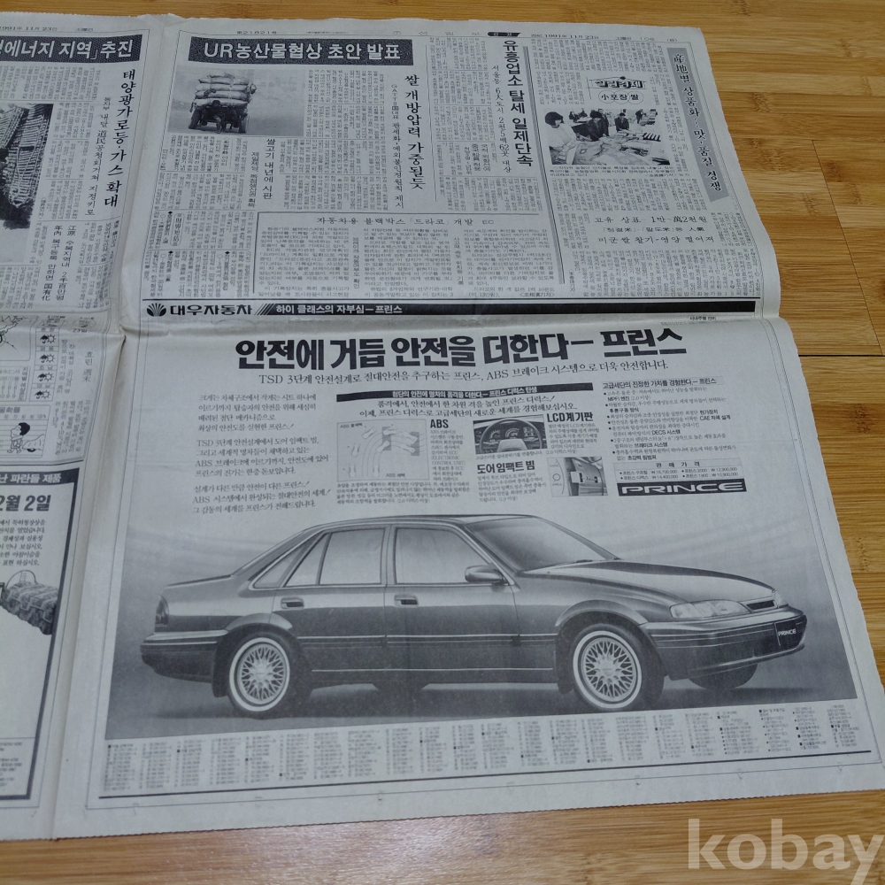 대우 프린스 승용차 광고 조선일보 91년11월23일 올려드립니다