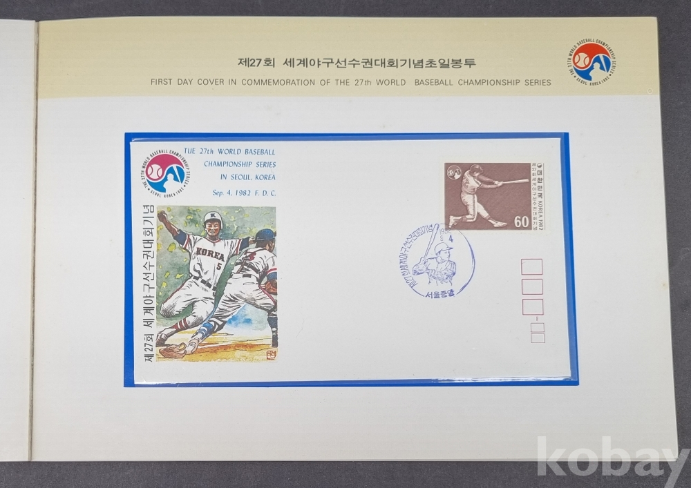 초일봉투 (FDC): 우표가 발행된 첫날(1982. 9. 4.)의 소인이 찍힌 봉투.