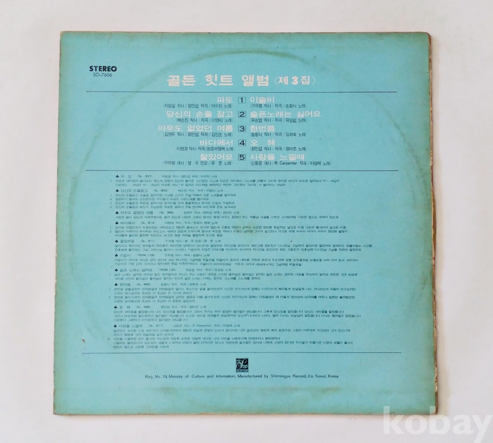 EX : 약간의 마모, 모서리 찢김 존재 음반상태