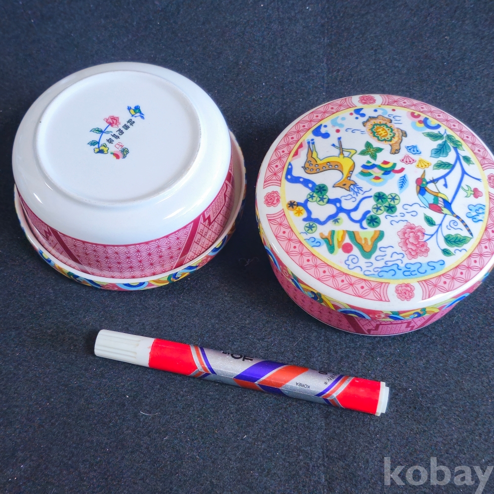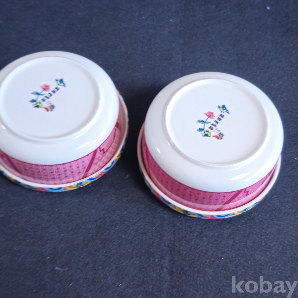 (((근현대사자료/도자기식기))) 오래전 韓國陶磁器 십장생그림 도자기주발 2개
