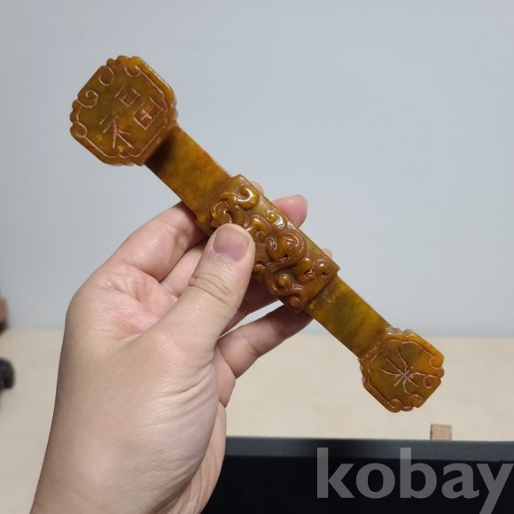 전용박스에 담긴 옥 제품입니다 여의 형태로 조각하여 기품있고 선물용으로도 좋습니다.