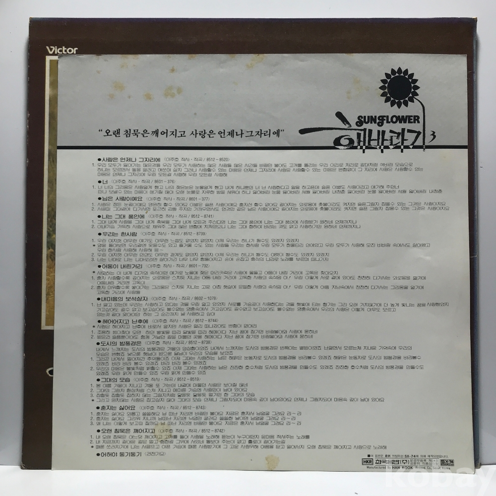 LP 83,050-153 해바라기 3집 - 내 마음의 보석상자 _ 자켓 EX+ 알판 EX 86 년 국내반