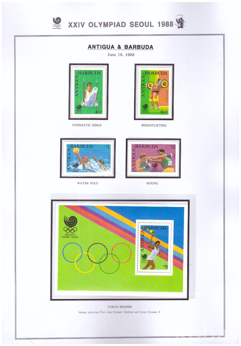 (서울올림픽) Antigua & Barbuda(안티구아 바부다) 1988.6.10 체조 링외 4완+s/s MNH