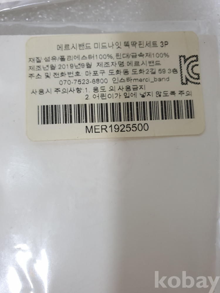 {천원경매} 3-1354 메르시 밴드 미드나잇 똑딱핀 3개세트 4묶음