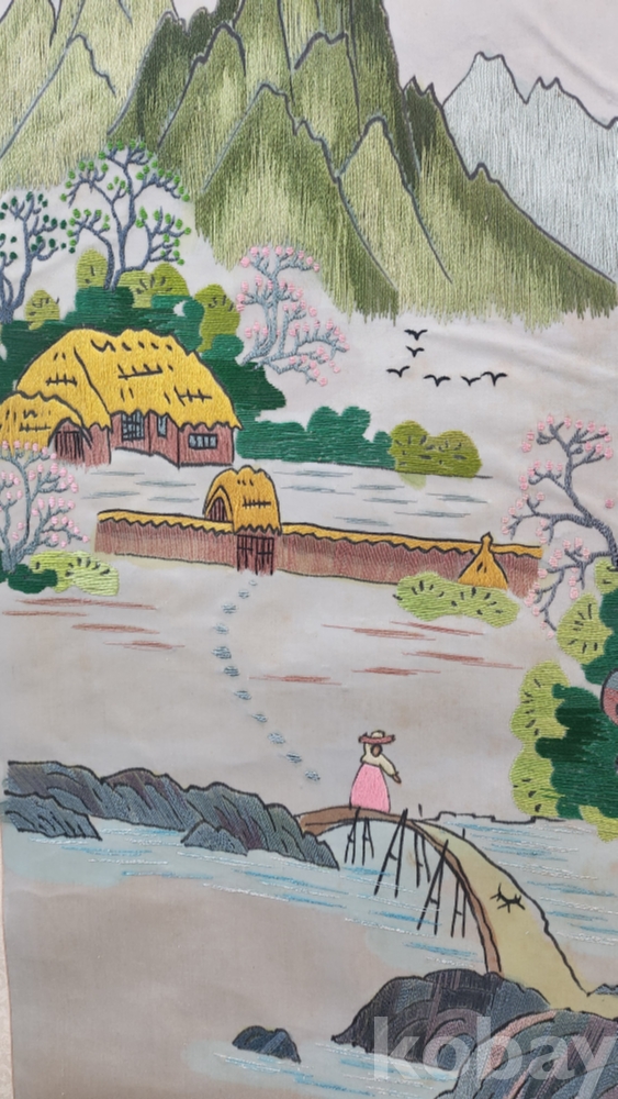 Kㅡ69 차 23좌 특상 번 //// 수예(手藝)로 완성된 산수화 1/2 반절 크입니다,