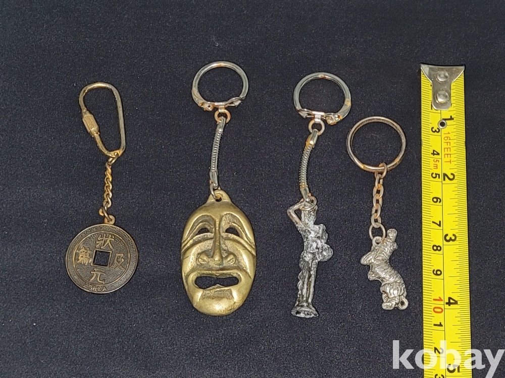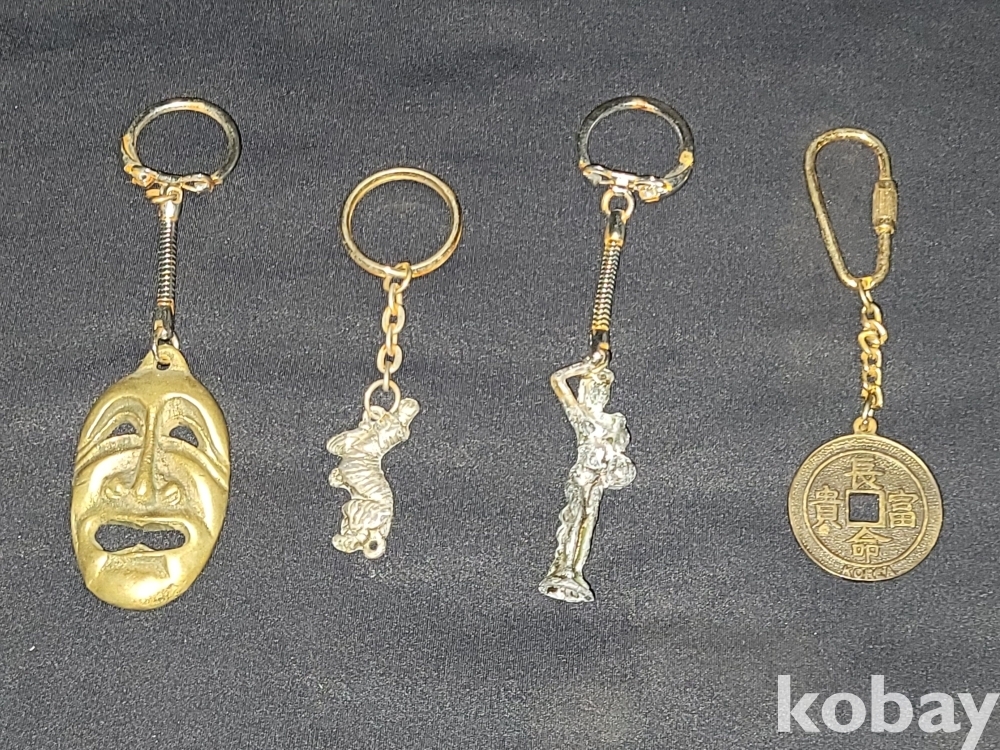 빈티지 세월 감이 느껴지는 각종 옛날 키링 열쇠고리 4종 일괄입니다.