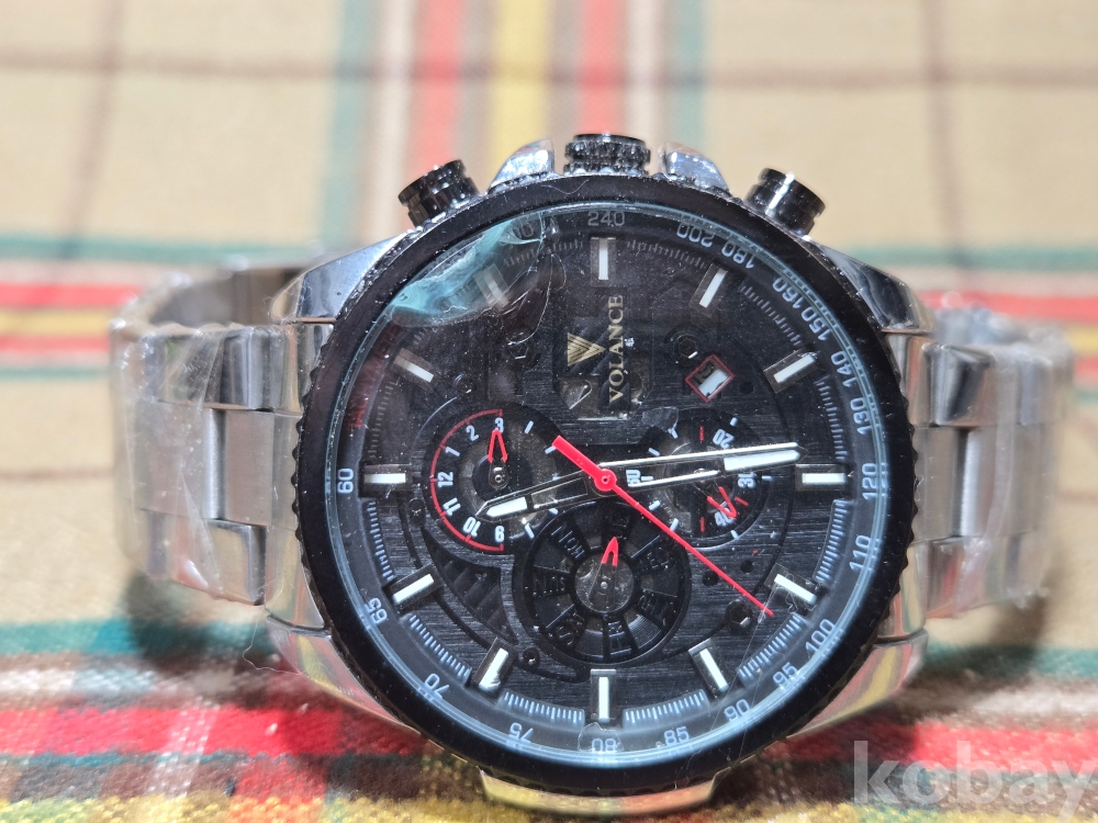 <투킴스> 빈티지 남성 기계식 크로노그래프 손목시계-유리파손, 작동됨