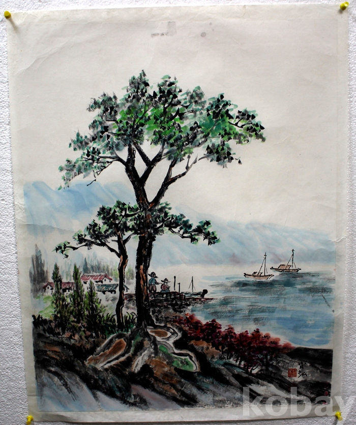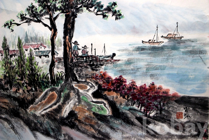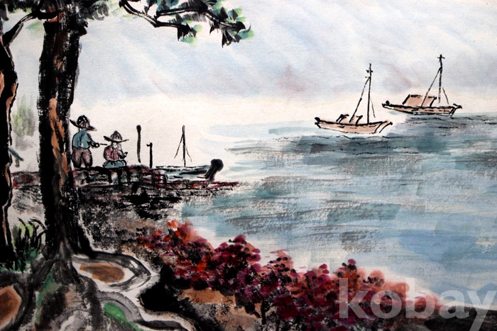 조성숙의 작품 (3) - 노송과 배가 있는 한가로운 바닷가 풍경