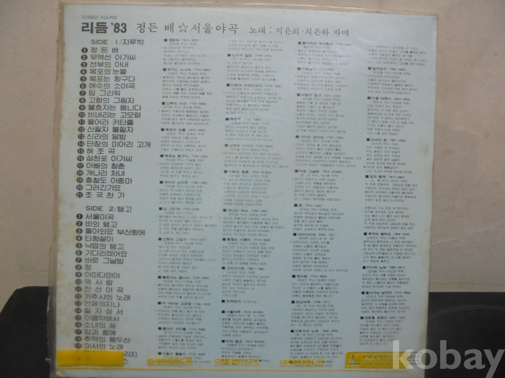 | 자켓상태 | G : 눈에 띄는 손상, 테이프, 필기 존재 | 음반상태 | VG : 생활 기스 다수, 가벼운 노이즈 존재 | 발매정보 | 알수없음 | 가사지여부 | 유 |