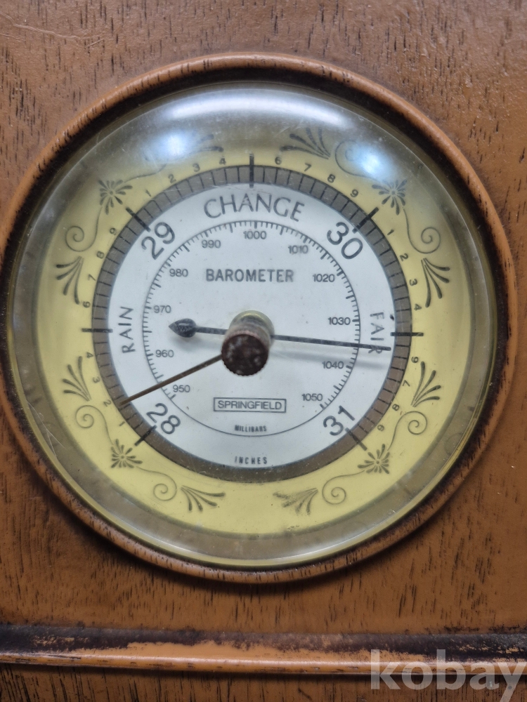 1970년대 SPRING FIELD INSTRUMENT CO 빈티지 벽걸이 기상 관측기 온도계 습도게 기압계 재질 플라스틱 16*54*6