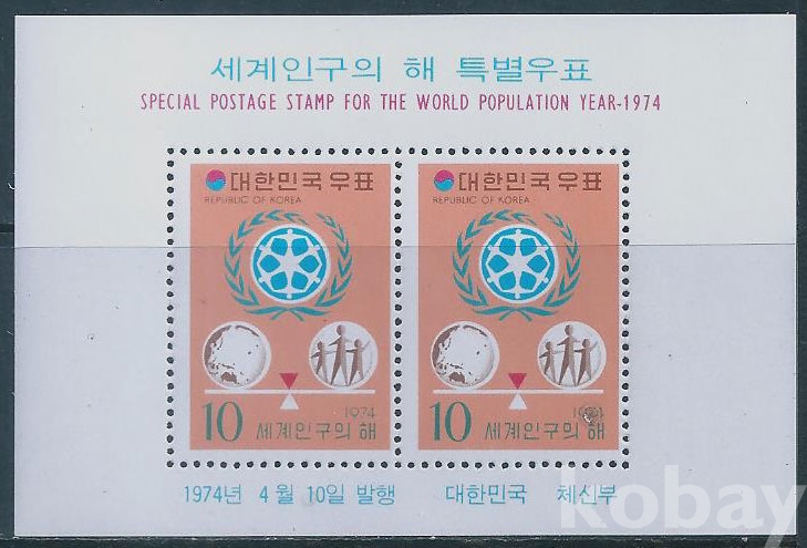 (한국시트-852)1974년게계인구의해시트(미사용제)-MNH, F~VF