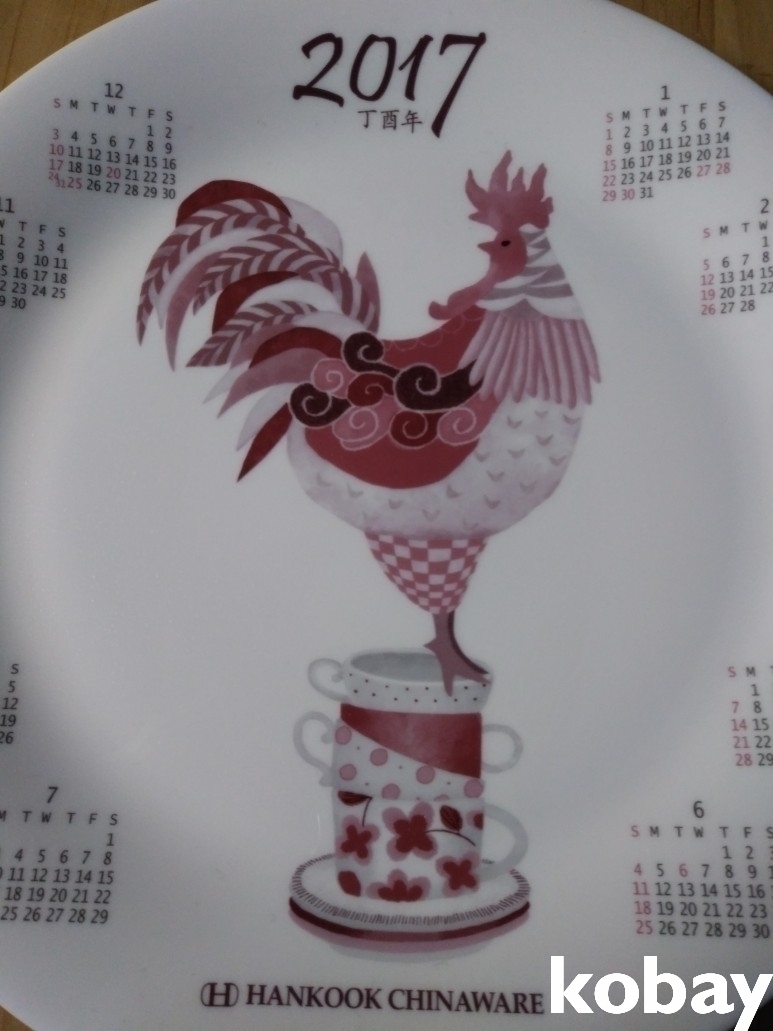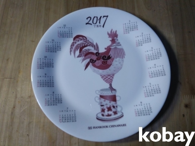 2017년 달력과 닭 그림이 표현된 도자기 접시 입니다.