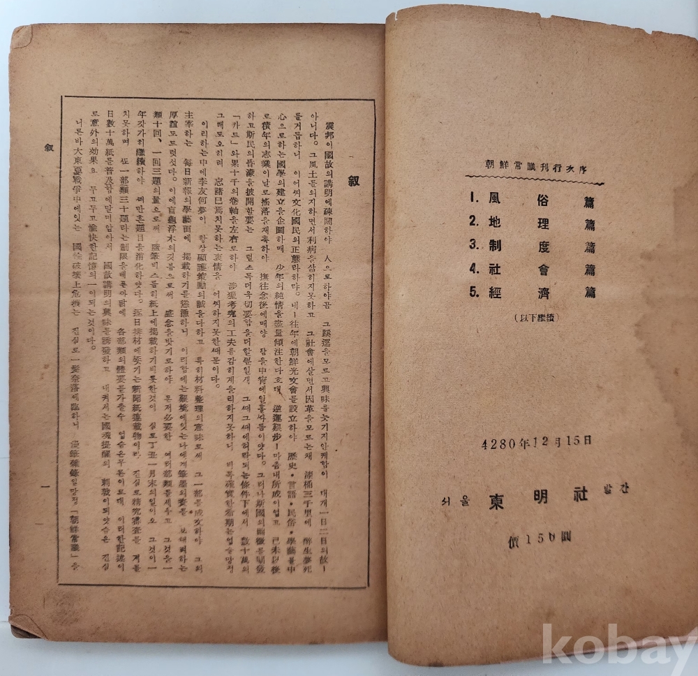 숙지 사항 | ▶ 게시 내용 외 물품에 대한 문의가 있으면 반드시 입찰 전에 문의하시기 바랍니다. 낙찰받은 후 뒤늦은 문의로 거래 여부를 정하지 않습니다. 아무쪼록 이 점 신중히 고려하여 입찰해주시기 바랍니다. ▶ 희귀본이나, 책 상태에 있어서 본래 상태로 보전되지 않은 부분을 보수한 책입니다. 이 점 꼭 참고하여 신중하게 판단하여 입찰하시기를 부탁드립니다. 책 상태 사진으로 확인 필수! |