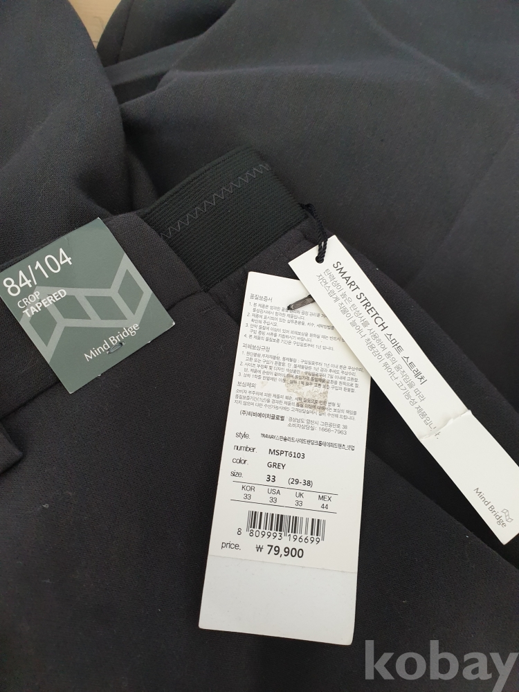 [천원경매] 3-027 마인드브릿지 스판 크롭 테이퍼드 팬츠(진그레이 컬러, 길이 97.5cm, 택있는 미착용제품이나 보관상 이슈로 미세 오염 있음)