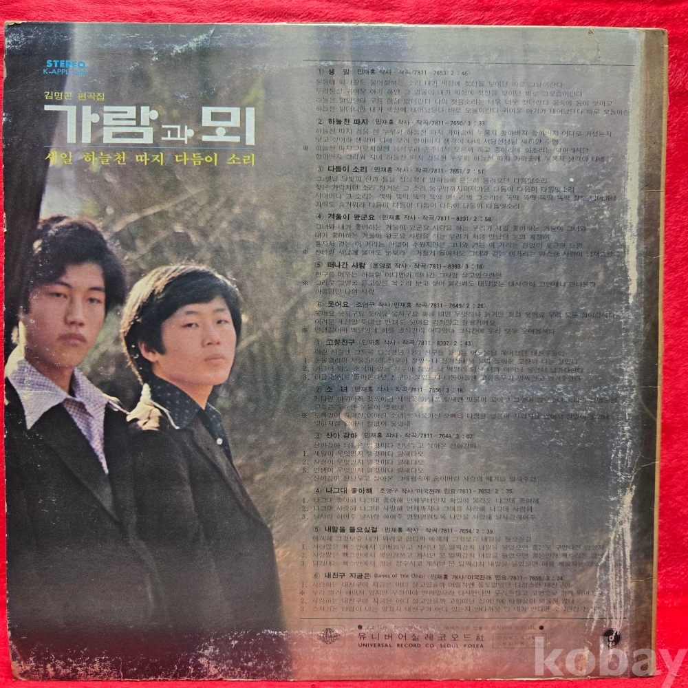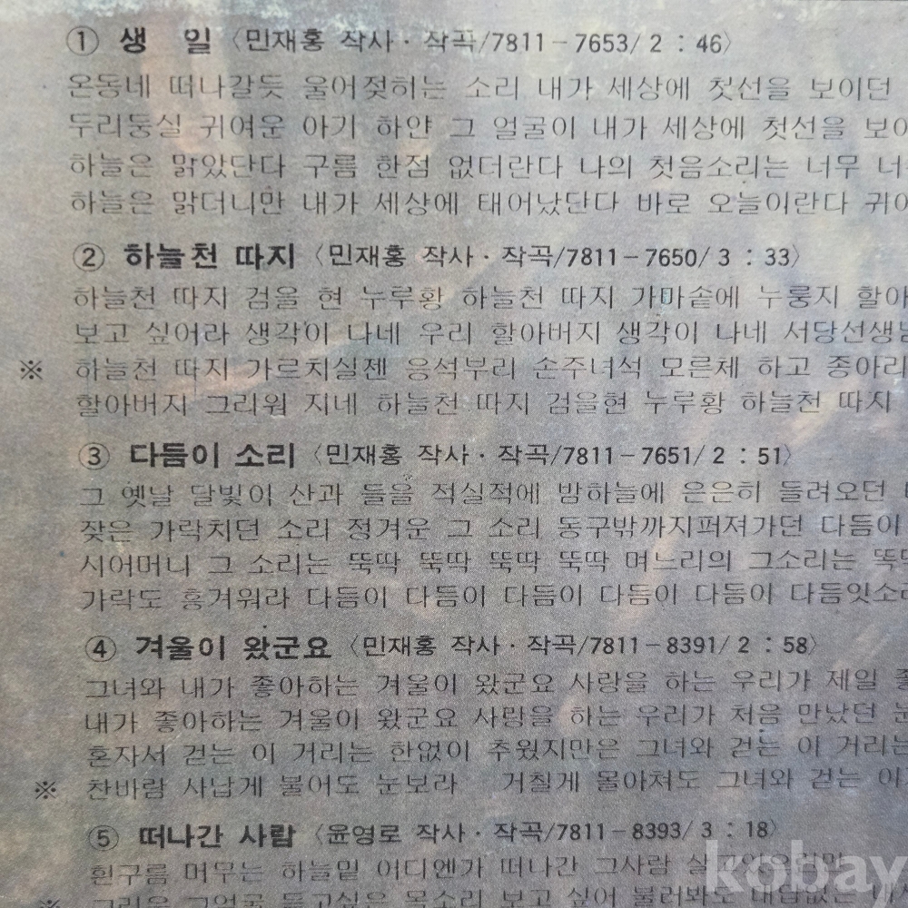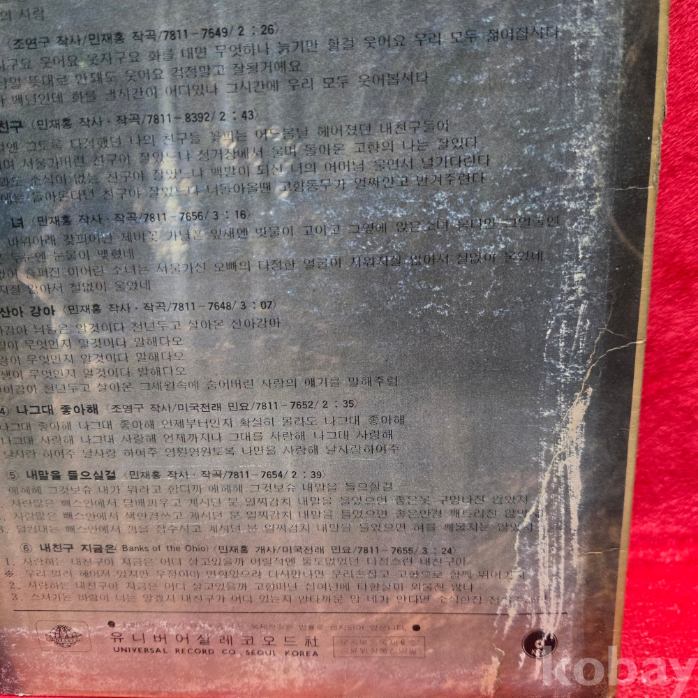 | 자켓상태 | VG : 주름, 접힘, 모서리 찢김 다수 | 음반상태 | EX : 재생에 영향 없는 가벼운 기스 존재 | 발매정보 | 초반 | 가사지여부 | 무 |